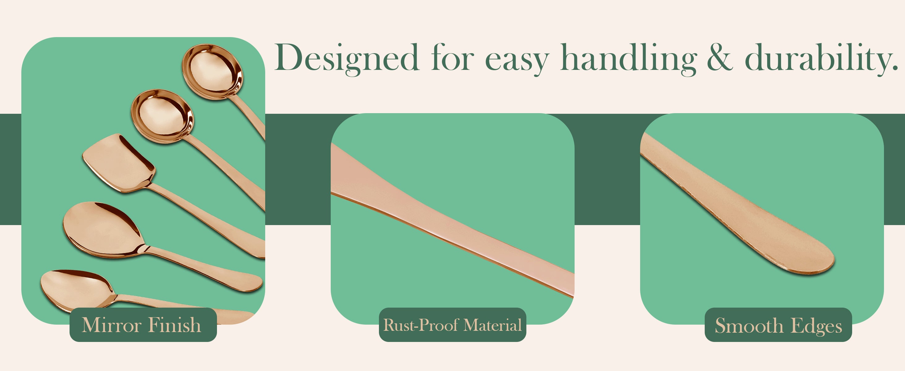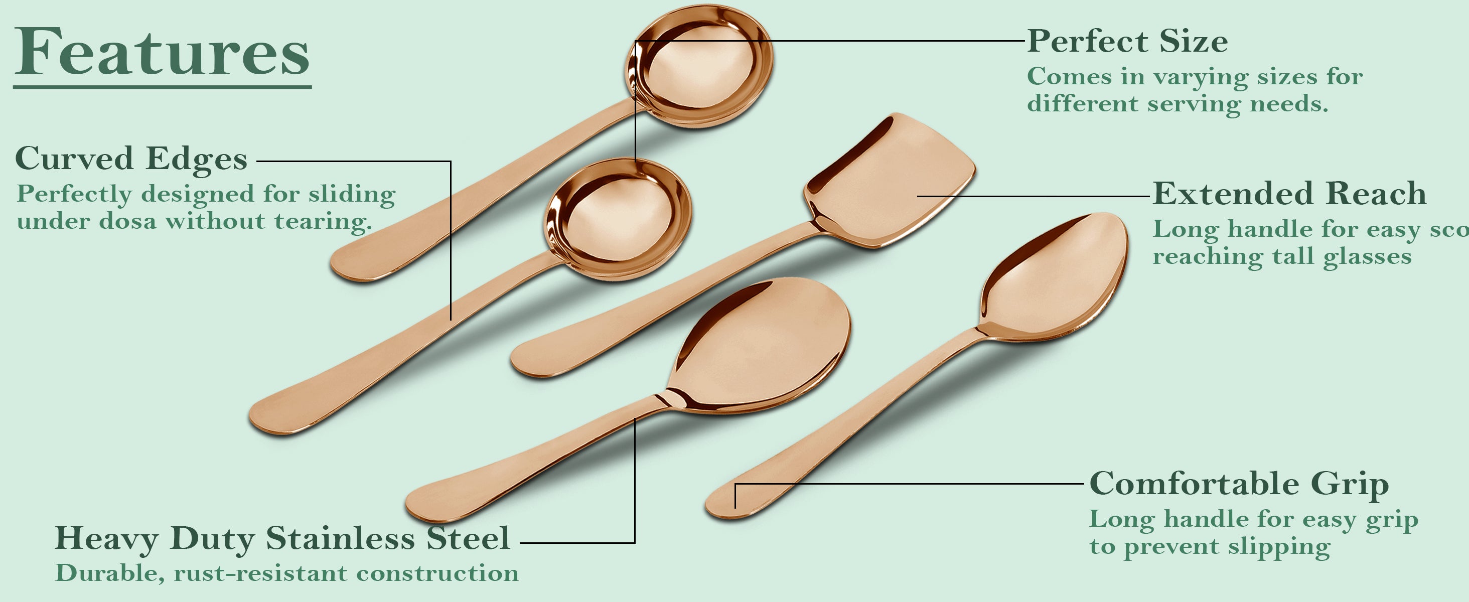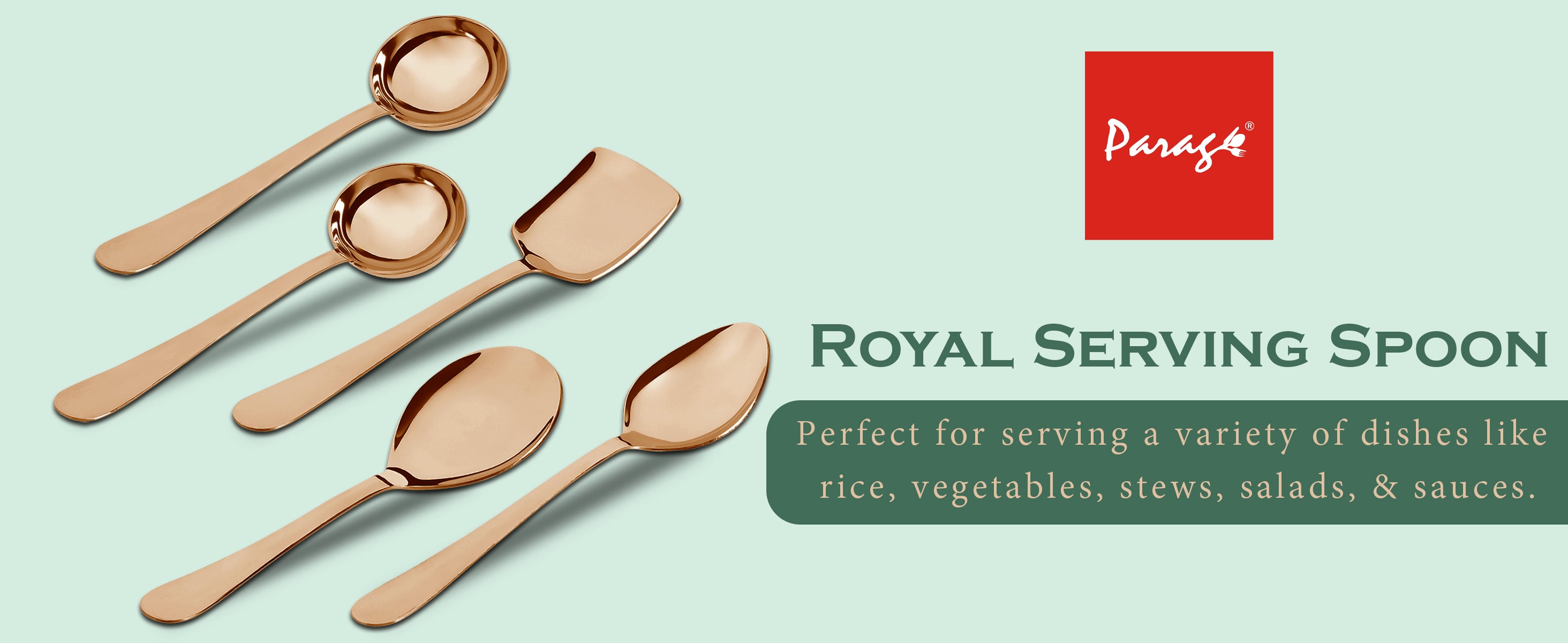 5 Pcs Stainless Steel Serving Spoon Set for Kitchen & Dining – 1.8mm Heavy Gauge, Soup Ladle, Solid & Rice Spoons, Steel Rose (Pack of 5)