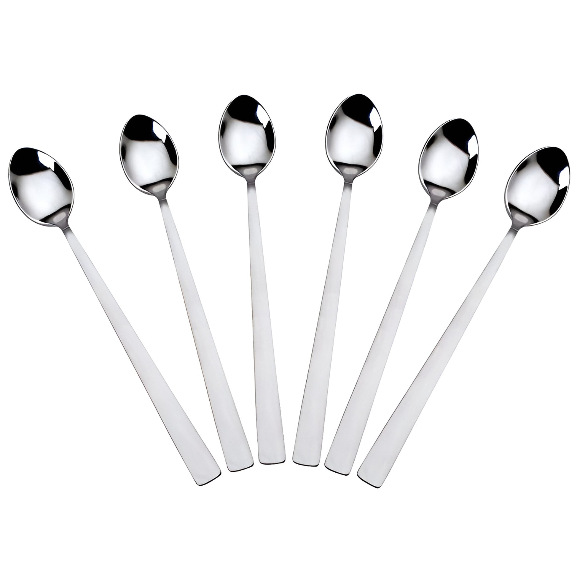 6 Pcs Stainless Steel Soda Spoon Set | 20.5 cm Long Handle Ice Cream Spoon Silver