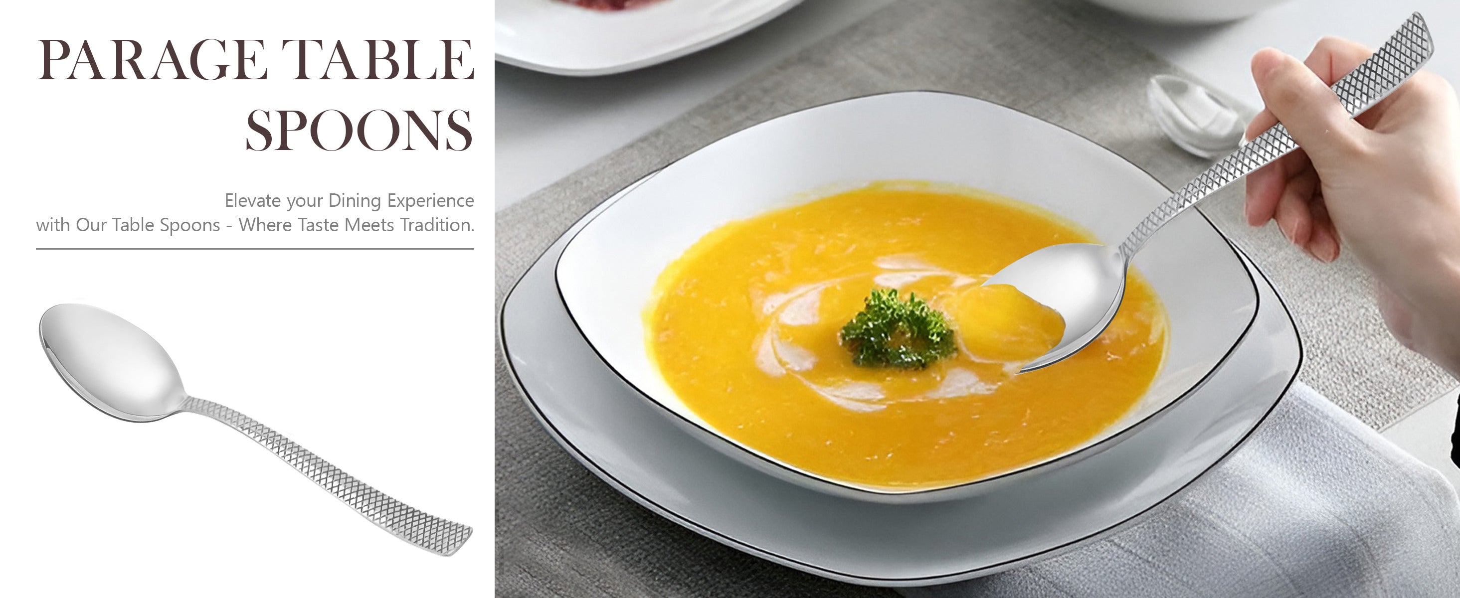 - HIGH-QUALITY STAINLESS STEEL-: The Parage 6 Piece Stainless Steel Table Spoons Set is crafted from premium-quality stainless steel, ensuring durability, corrosion resistance, and long-lasting performance.
