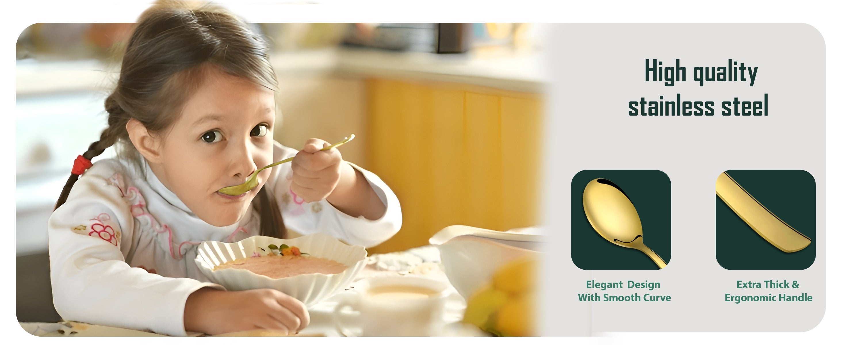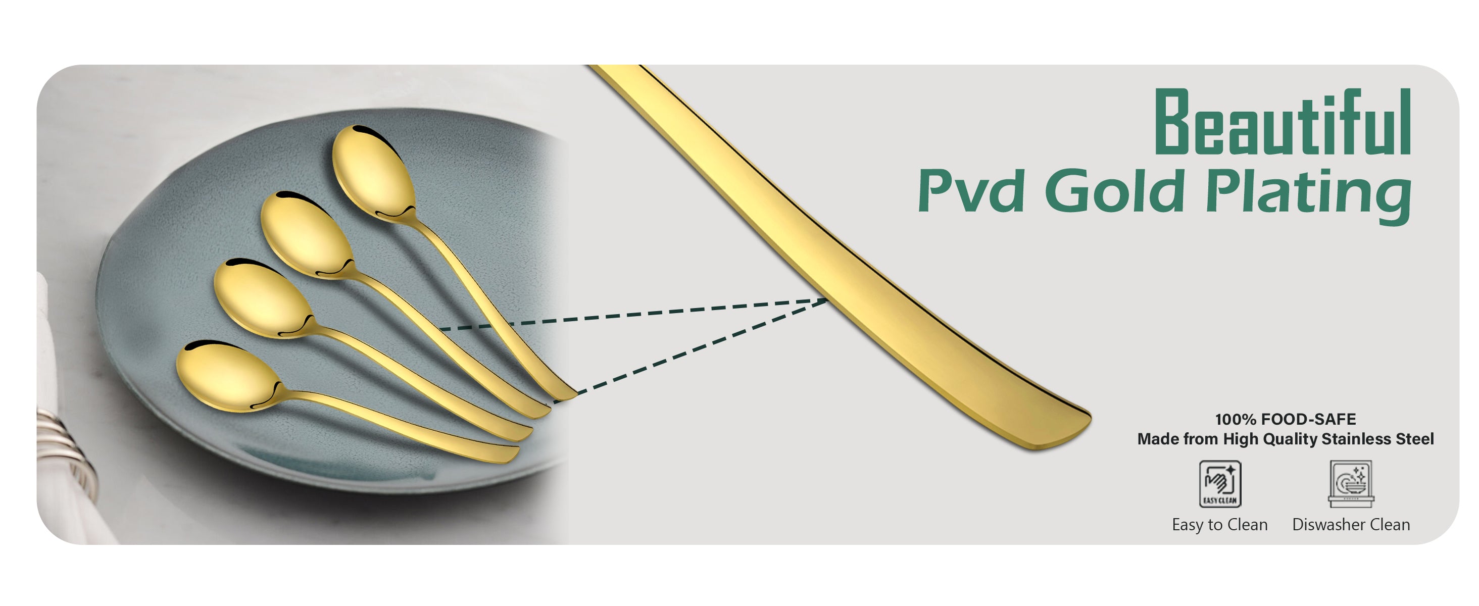 - ELEGANT PVD GOLD COATING: Finished with a luxurious PVD gold coating, these spoons add a touch of sophistication to any dining setup. The high-quality coating is fade-resistant, ensuring the golden shine remains vibrant and beautiful over time.