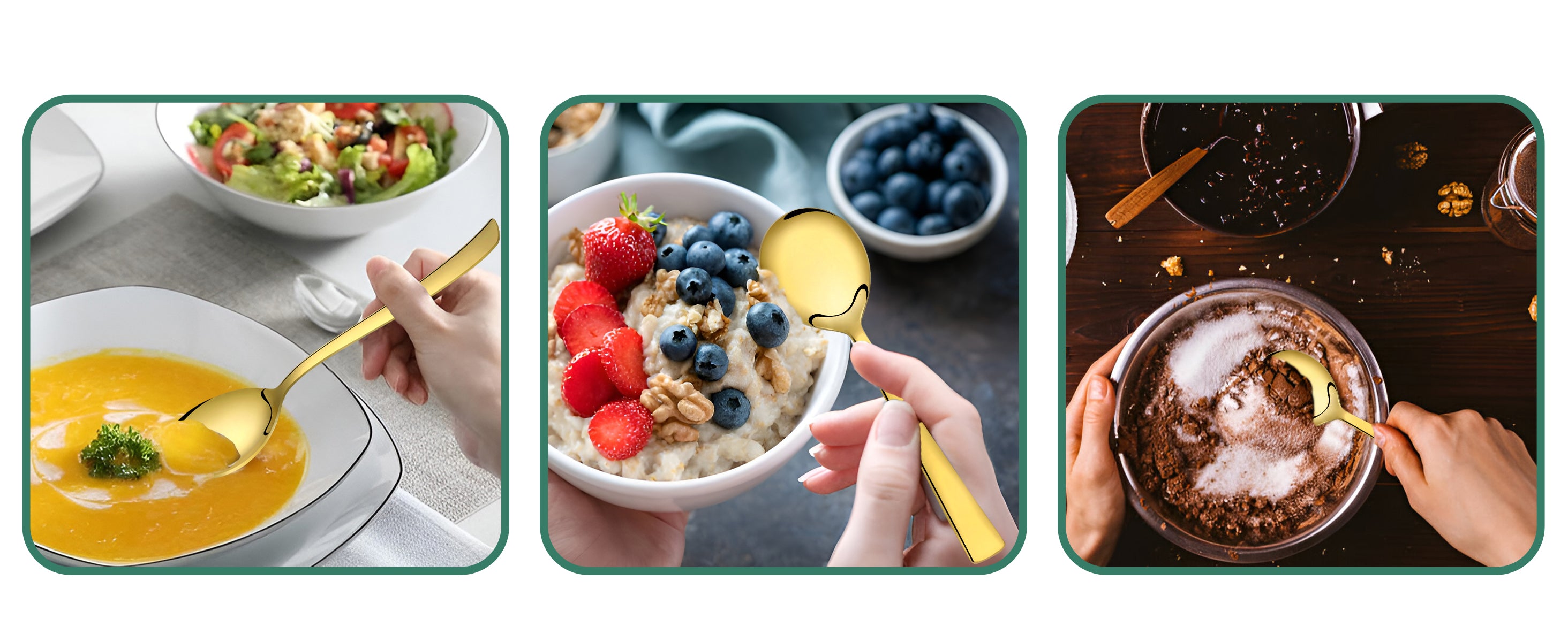 - IDEAL FOR HOME & PROFESSIONAL USE: Suitable for both home dining and professional settings such as restaurants and cafes, these spoons add a touch of elegance to any table. Their durable design and premium finish make them a valuable addition to any kitchen or dining collection.