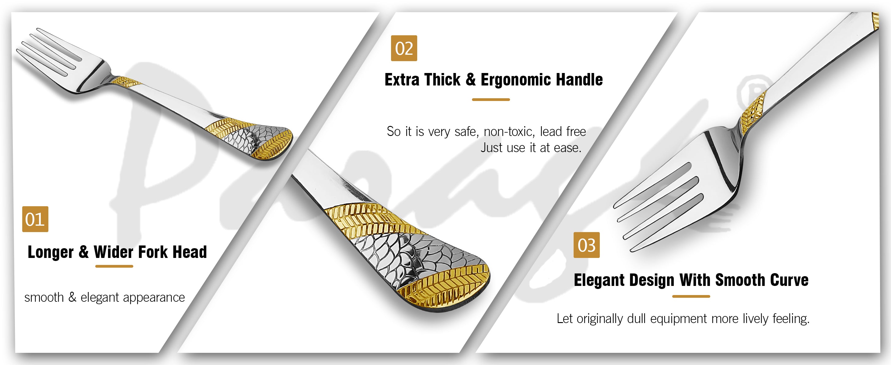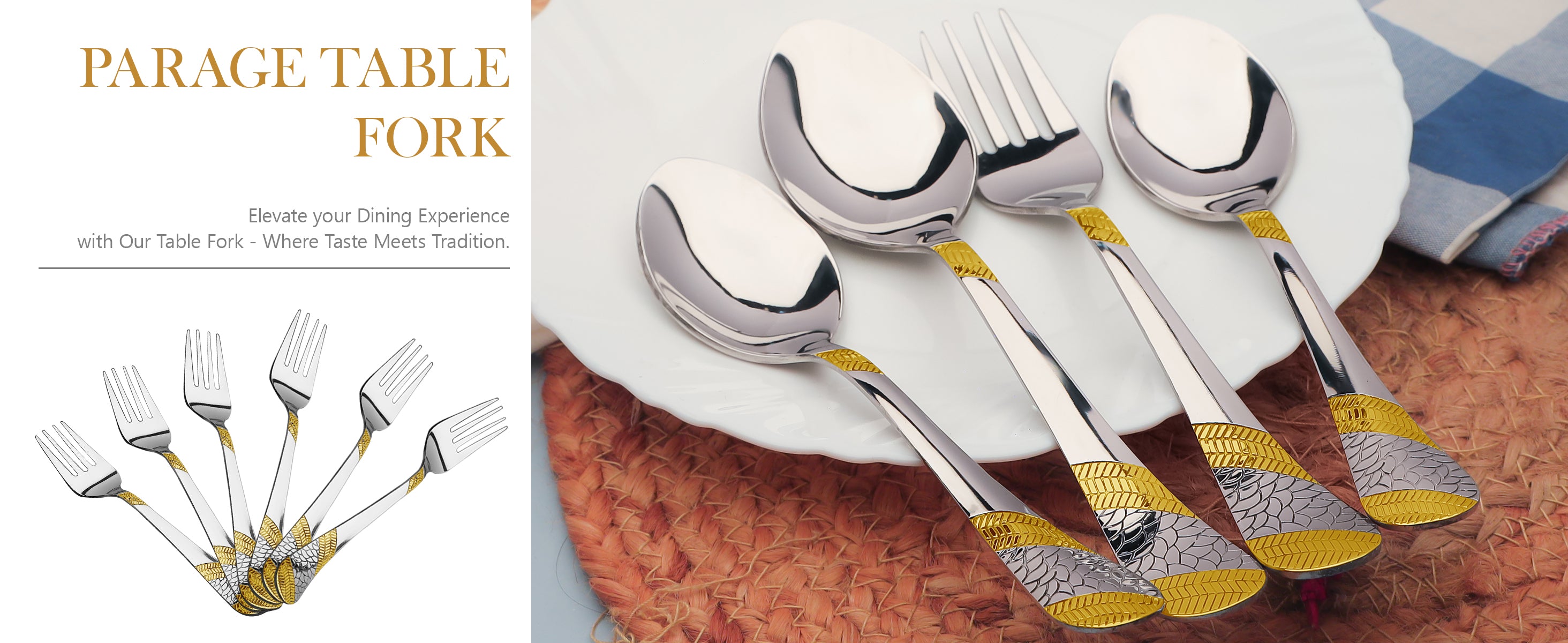 6 Pieces Stainless Steel 24K Gold Table Forks – 18.5 cm Premium Dining Cutlery