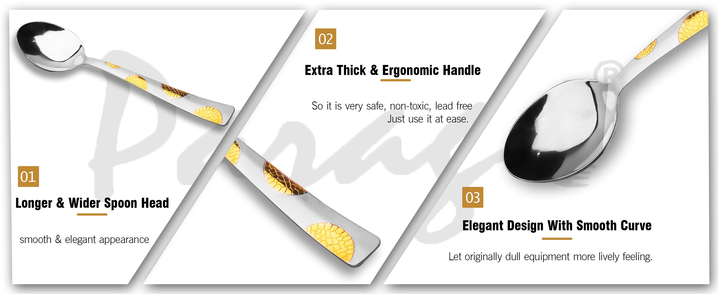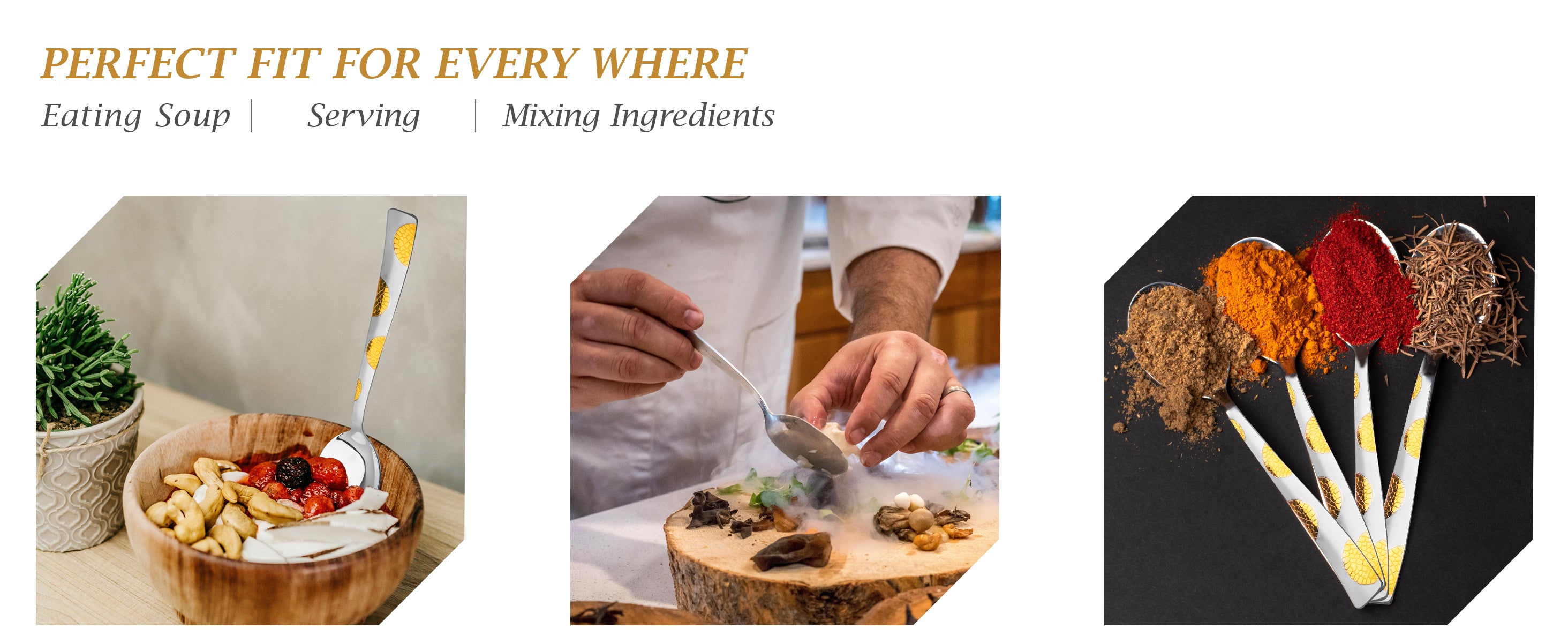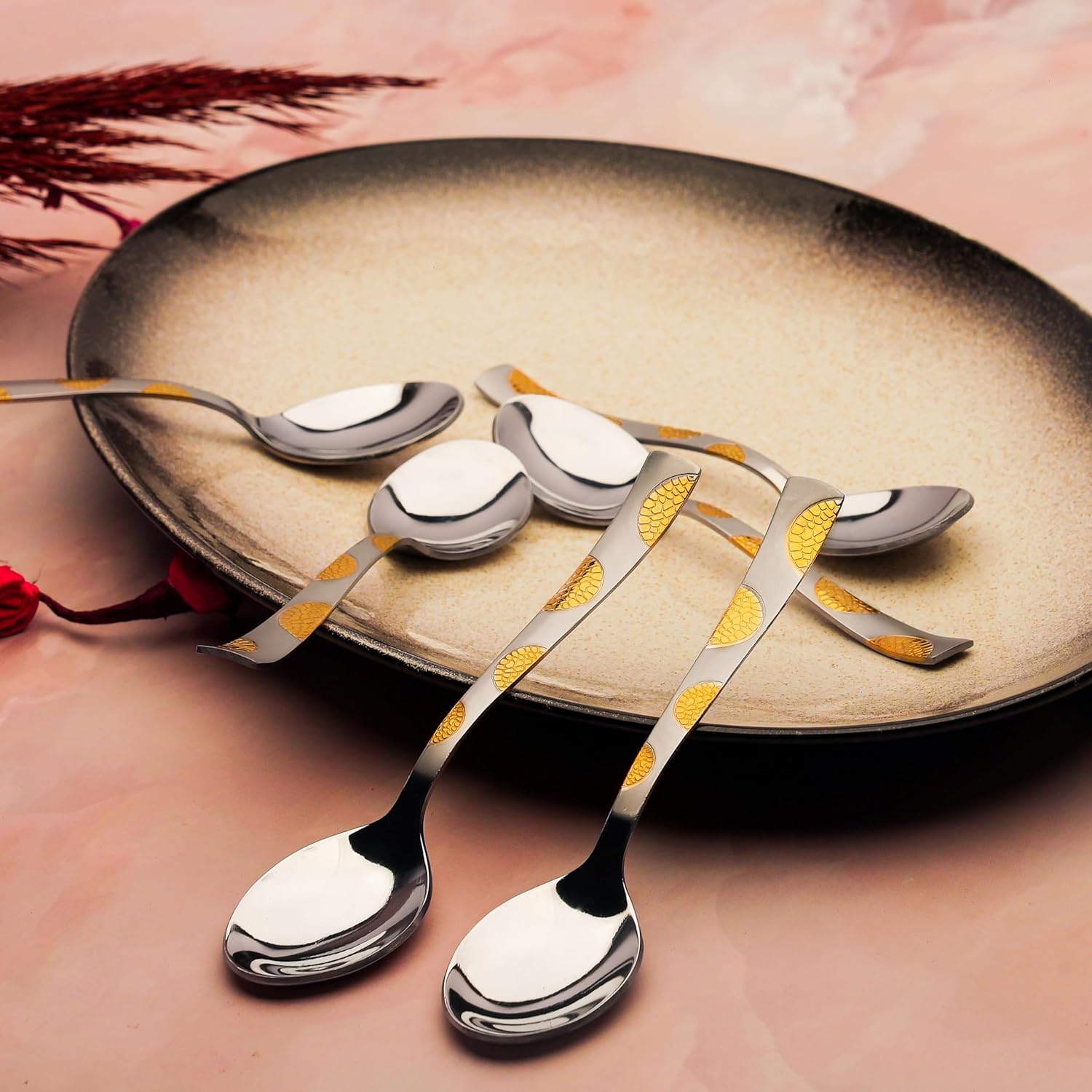 6 Pcs Stainless Steel 24K Gold Spoon Set – 15.5cm, Premium Dinner Spoons for Home & Kitchen, Luxury Tableware, Housewarming Gift, Moonpress Design