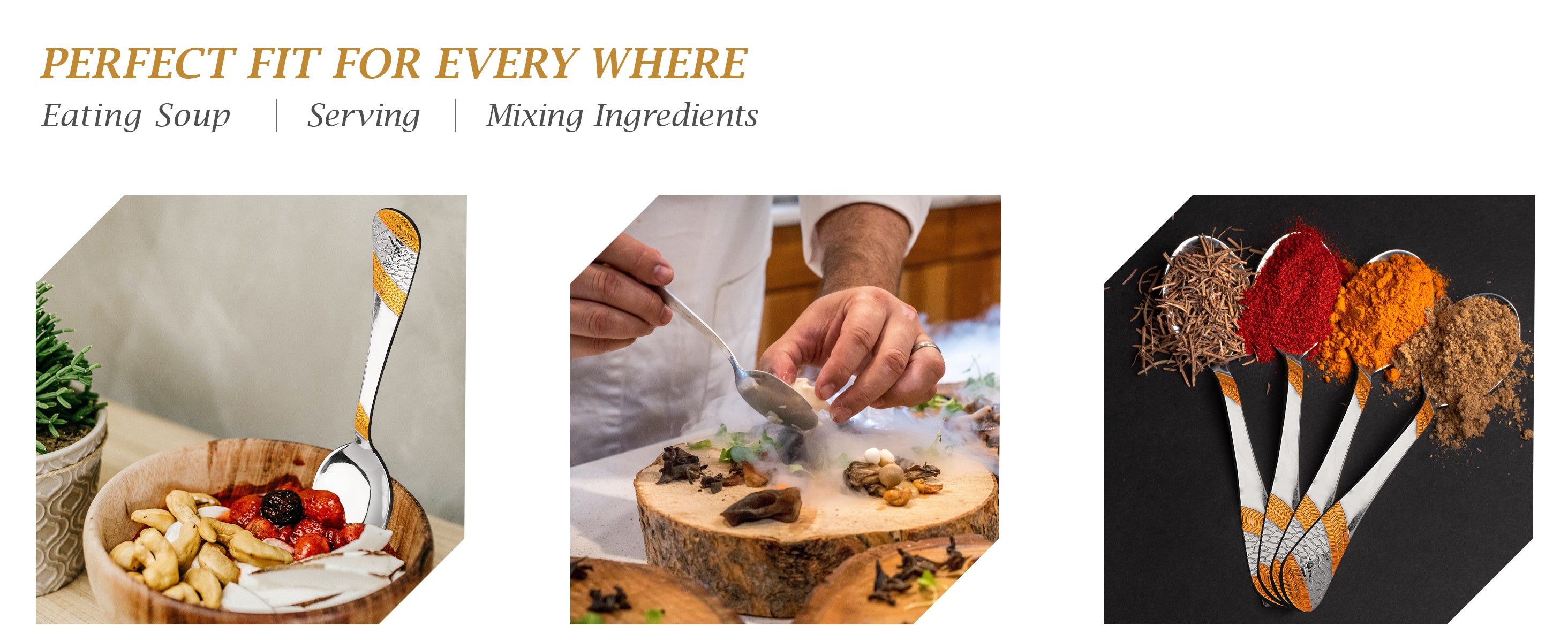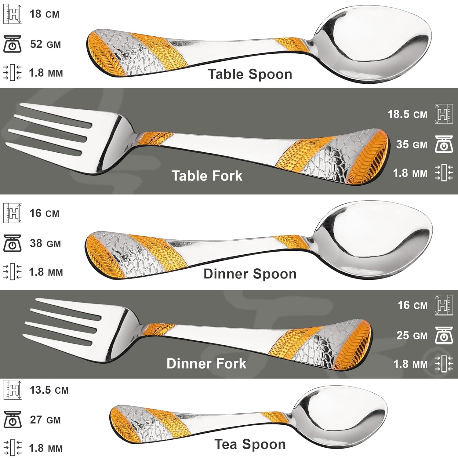 6 Pcs Stainless Steel 24K Gold Table Spoon Set – 18cm, Premium Large Spoons for Home & Kitchen, Luxury Tableware, Housewarming Gift, Imperial Design