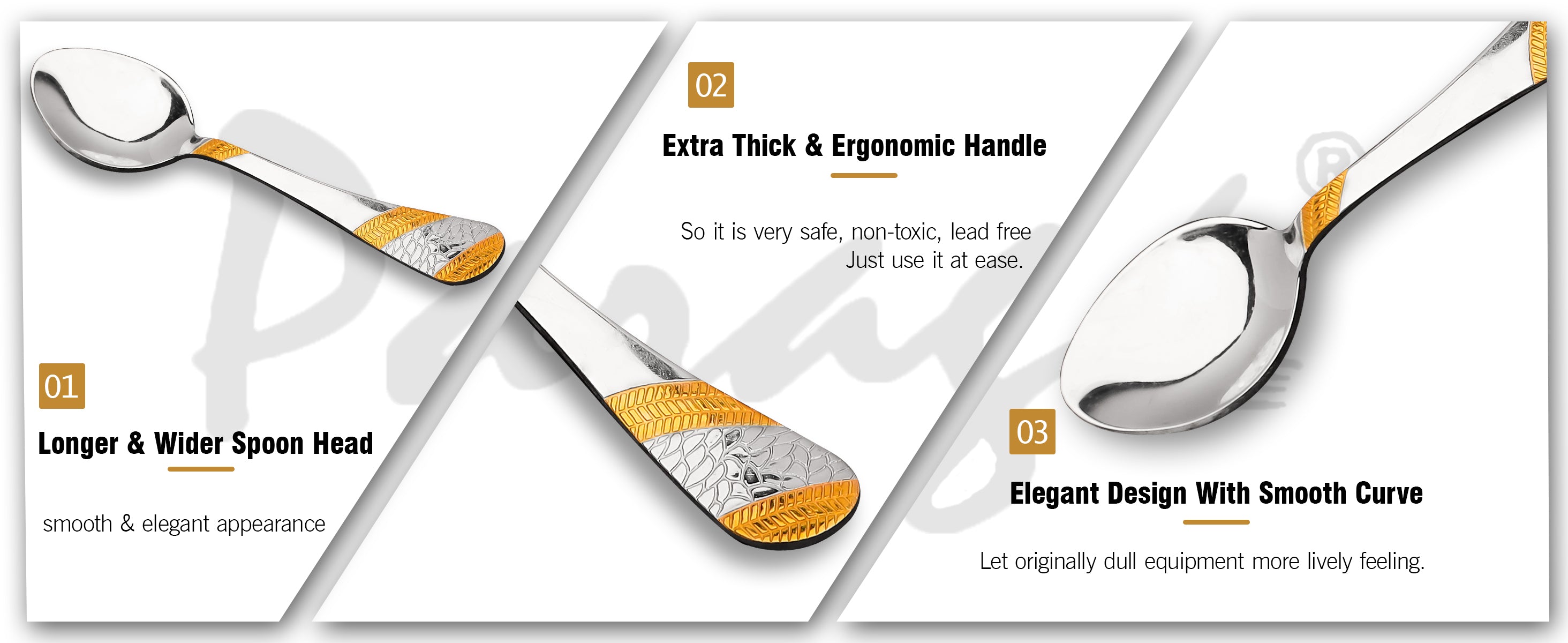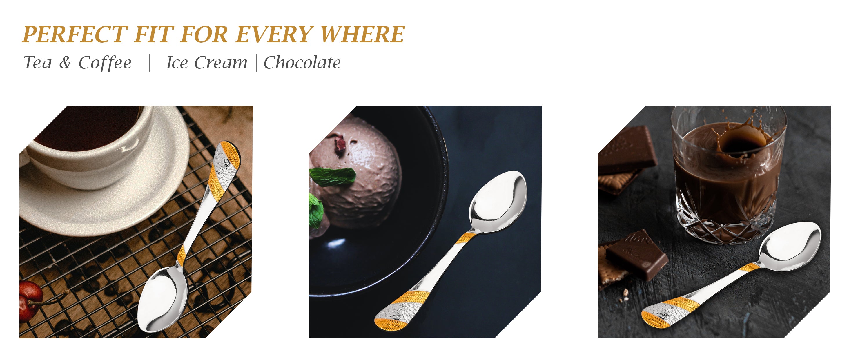 6 Pcs Stainless Steel 24K Gold Tea Spoon Set – 13.5cm, Premium Small Spoons for Home & Kitchen, Luxury Tableware, Housewarming Gift, Imperial Design