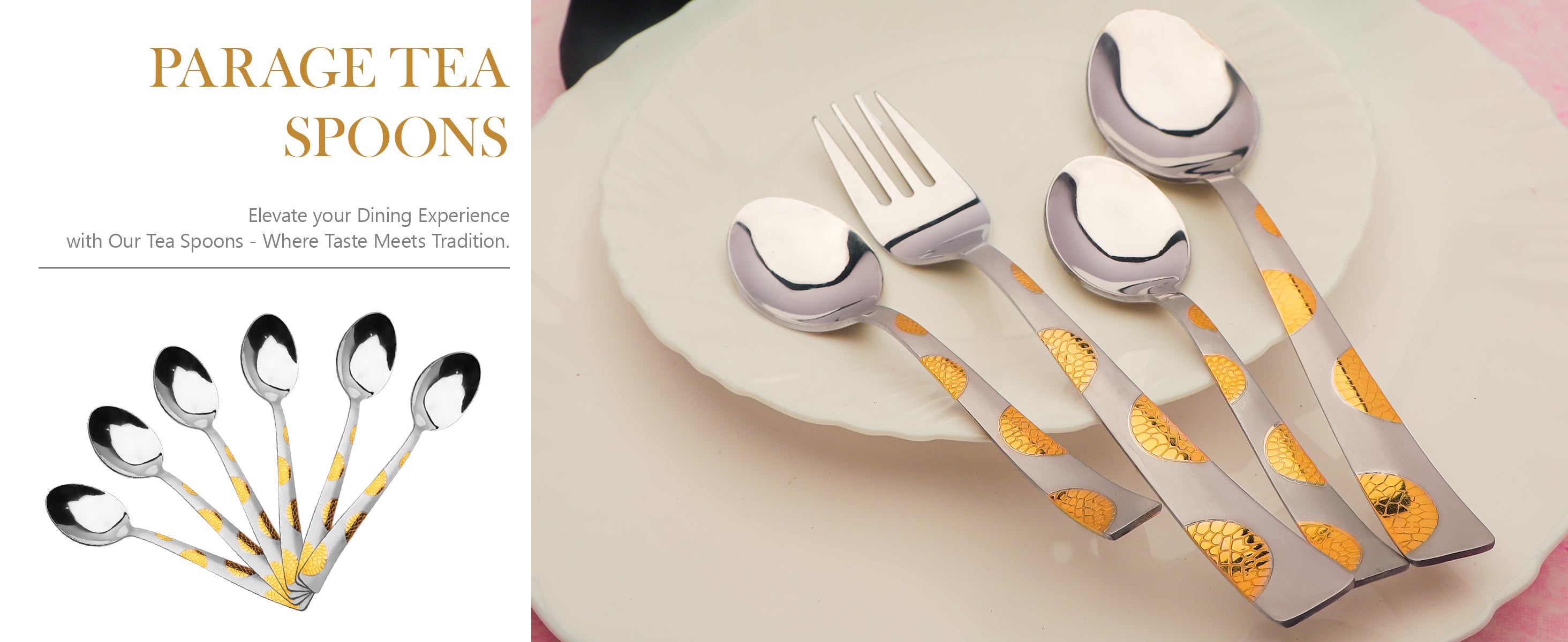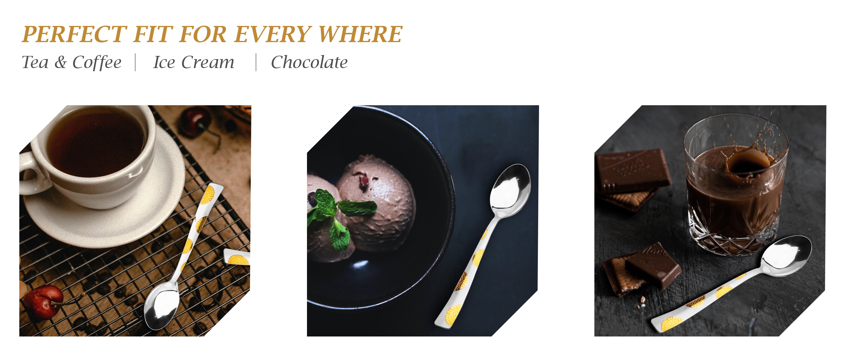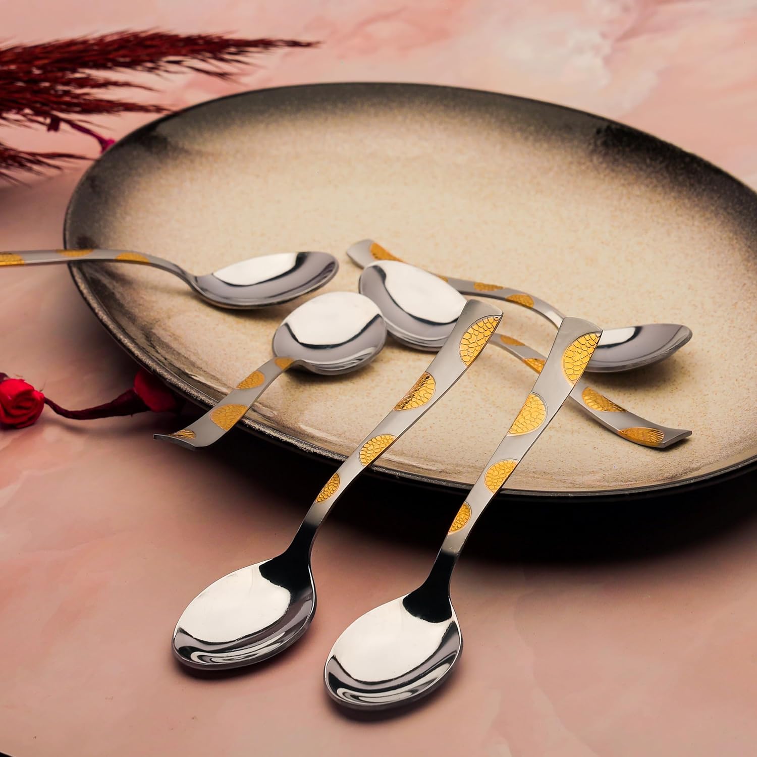 6 Pcs Stainless Steel 24K Gold Tea Spoon Set – 14cm, Premium Small Spoons for Home & Kitchen, Luxury Tableware, Housewarming Gift, Moonpress Design