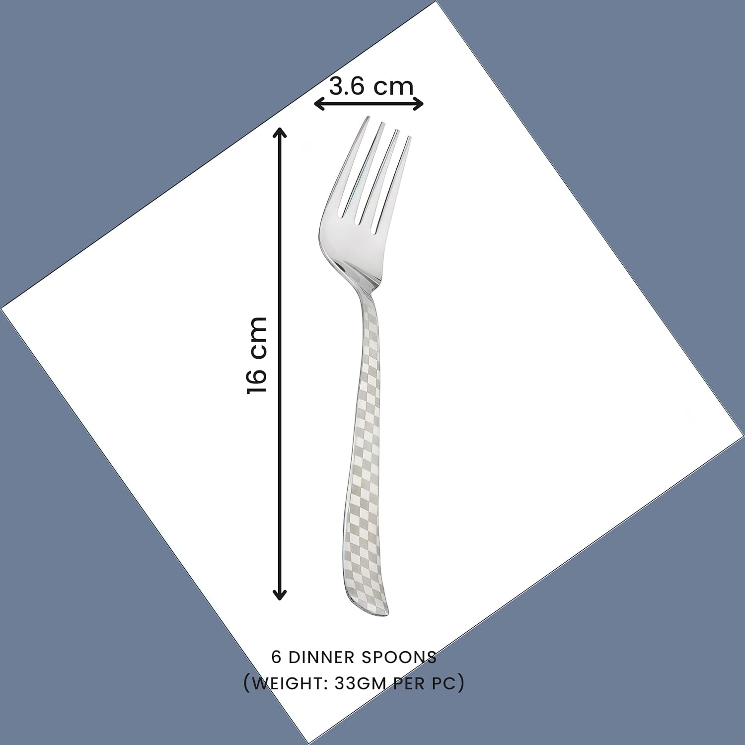6 Pieces Stainless Steel Baby Forks Set, 16 cm Dining Cutlery with Checks Design – Shiny Sturdy Handle Tableware for Home & Kitchen