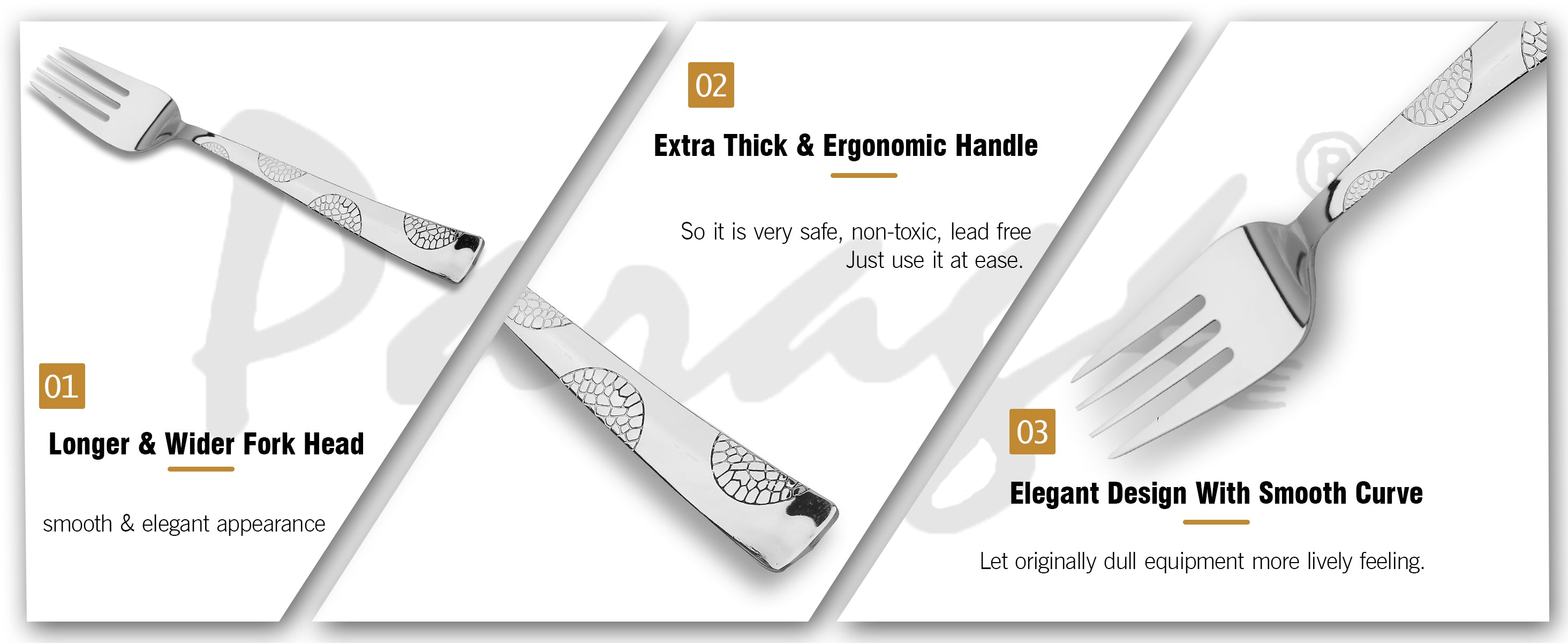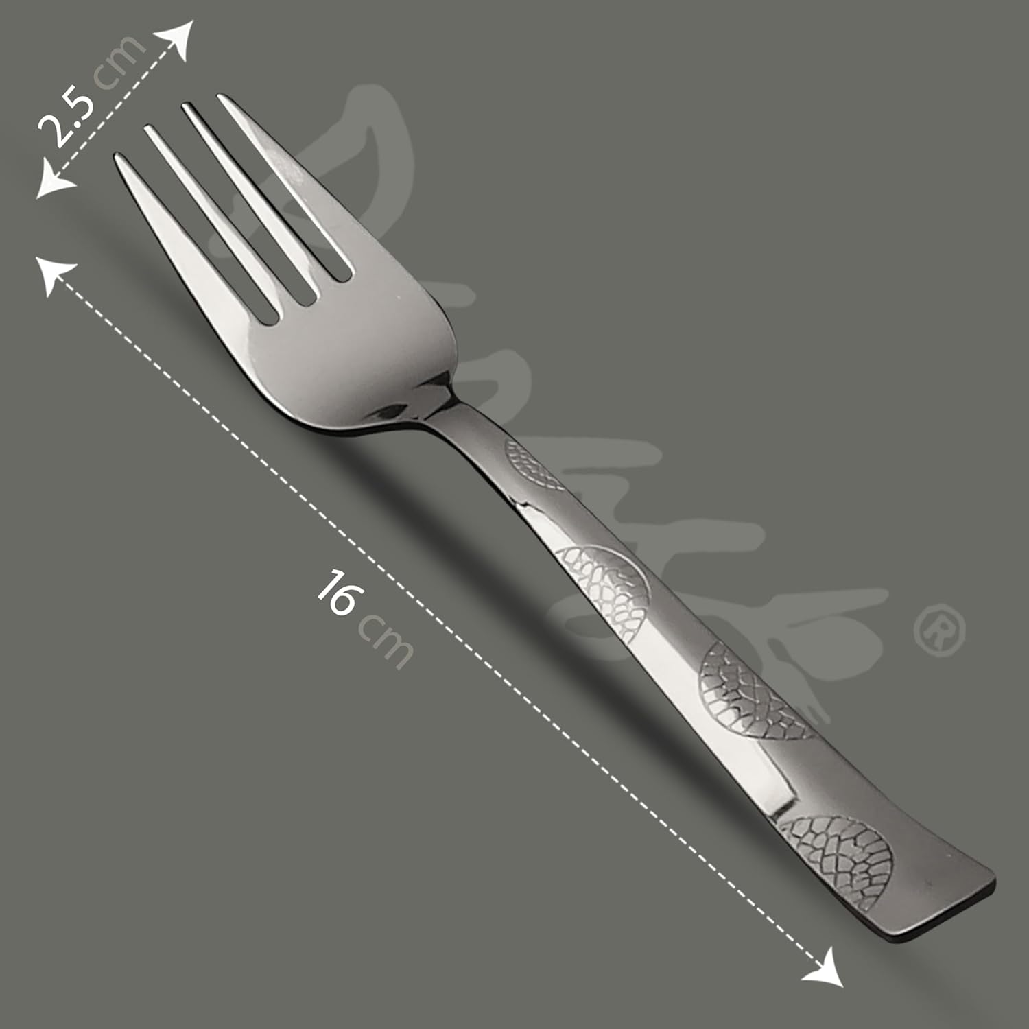 6-Piece Stainless Steel Forks, 16 cm Premium Silver Dining Cutlery Set with Moonpress Design – Luxury Forks for Home & Kitchen