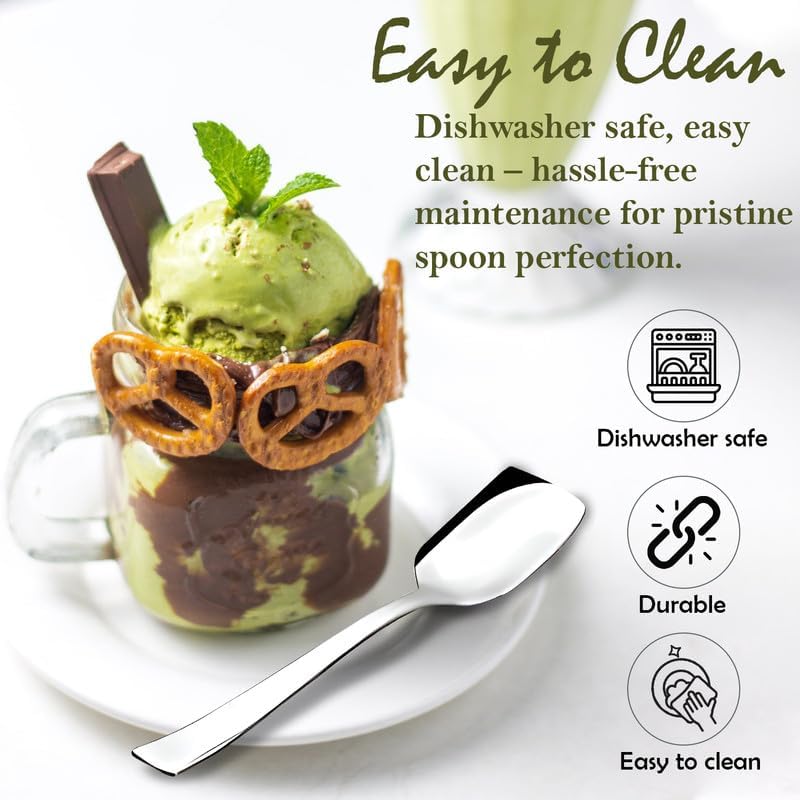 6 Pcs Stainless Steel Ice Cream Spoon Set – Silver, 13.5cm, Food Grade, Durable & Stylish Dessert Spoons for Home & Kitchen
