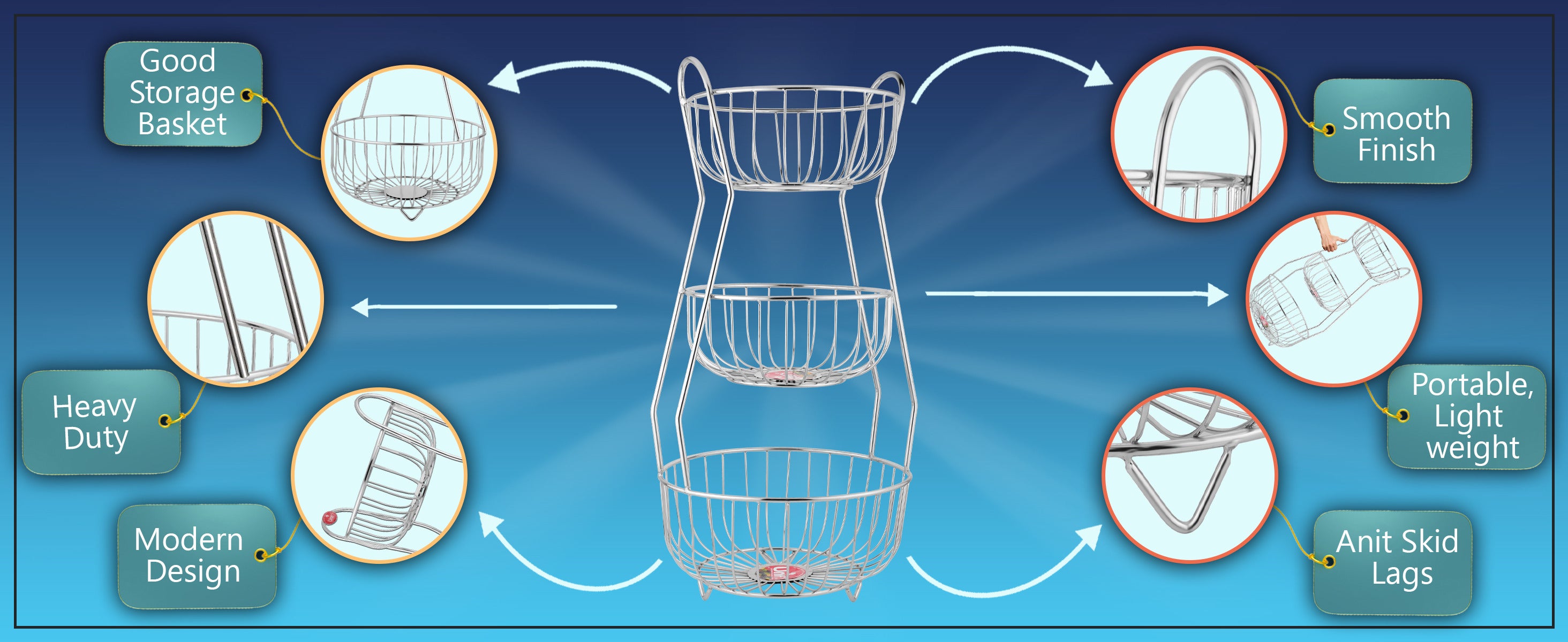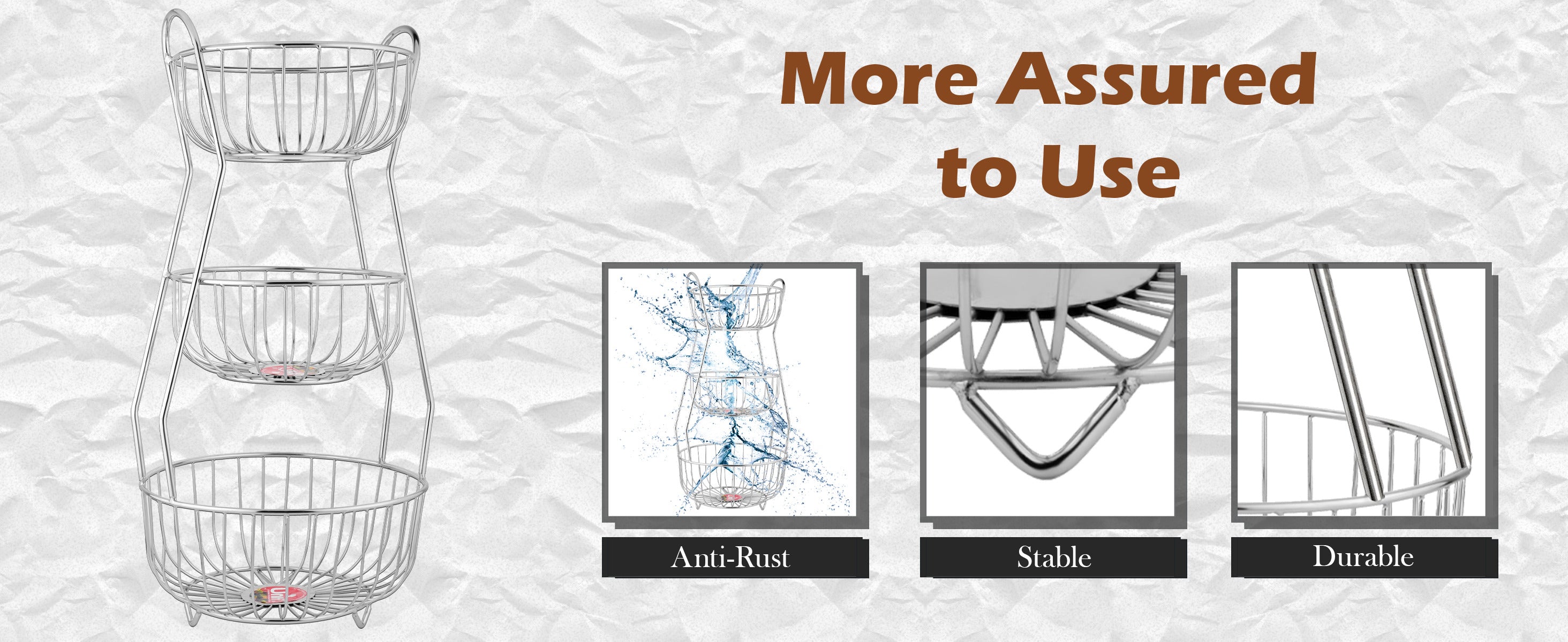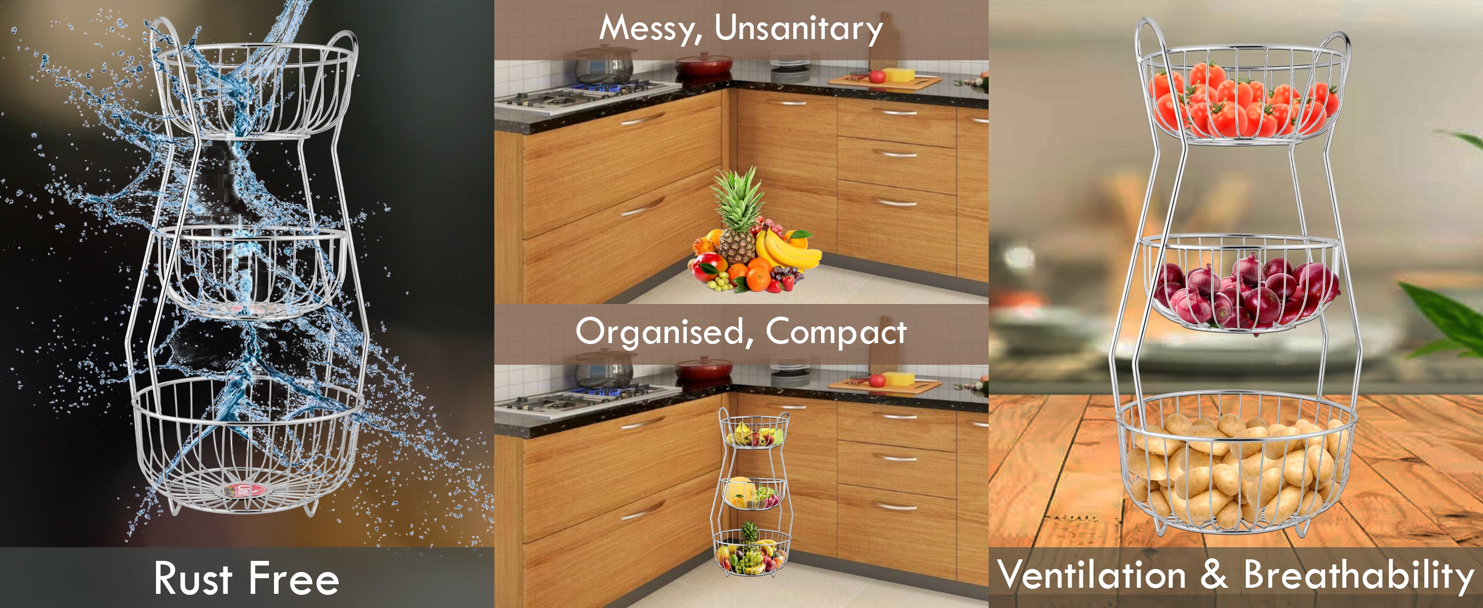 3-Tier Stainless Steel Fruit Basket – Round, Kitchen & Dining Table Stand
