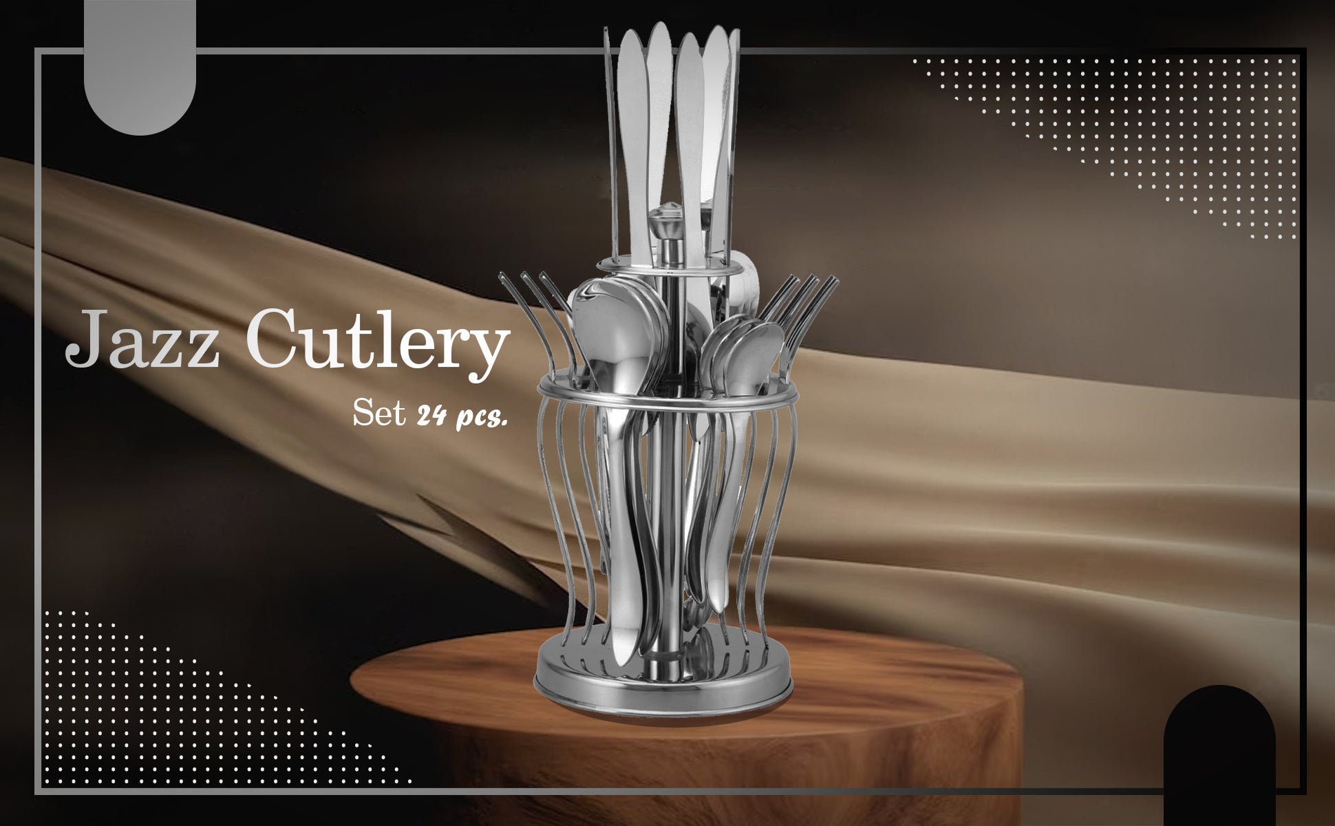 25 Pieces Jazz Premium Stainless Steel Cutlery Set – Spoons, Forks, Knives & Stand