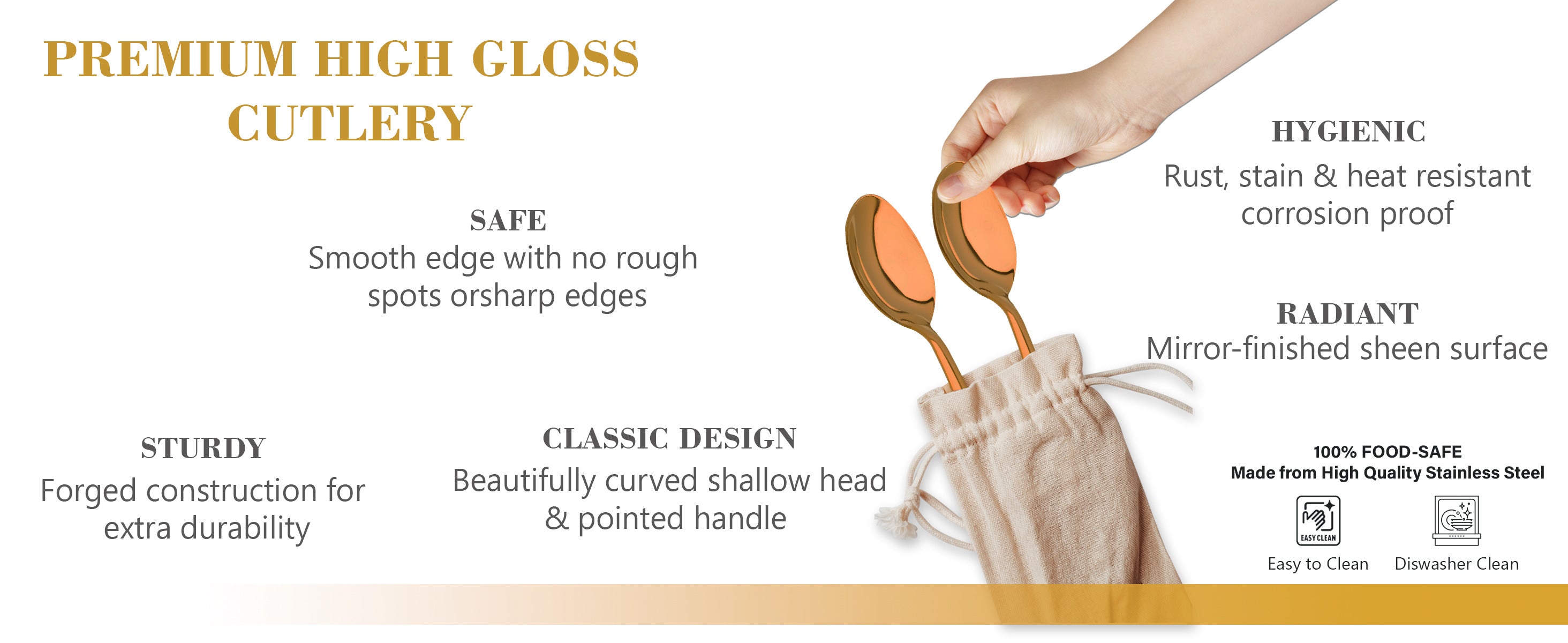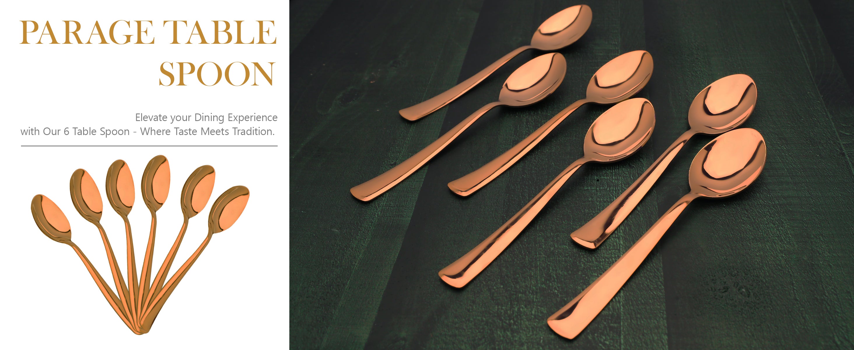 Elevate your dining experience with this set of 6 premium 18cm stainless steel table spoons featuring a chic rose gold finish. Crafted for durability and elegance, these large spoons combine functionality with luxury, making them ideal for everyday use or special occasions. Their sturdy build ensures long-lasting performance, while the sleek design complements any table setting. Perfect as a sophisticated housewarming gift, this set adds a refined touch to your kitchen essentials.