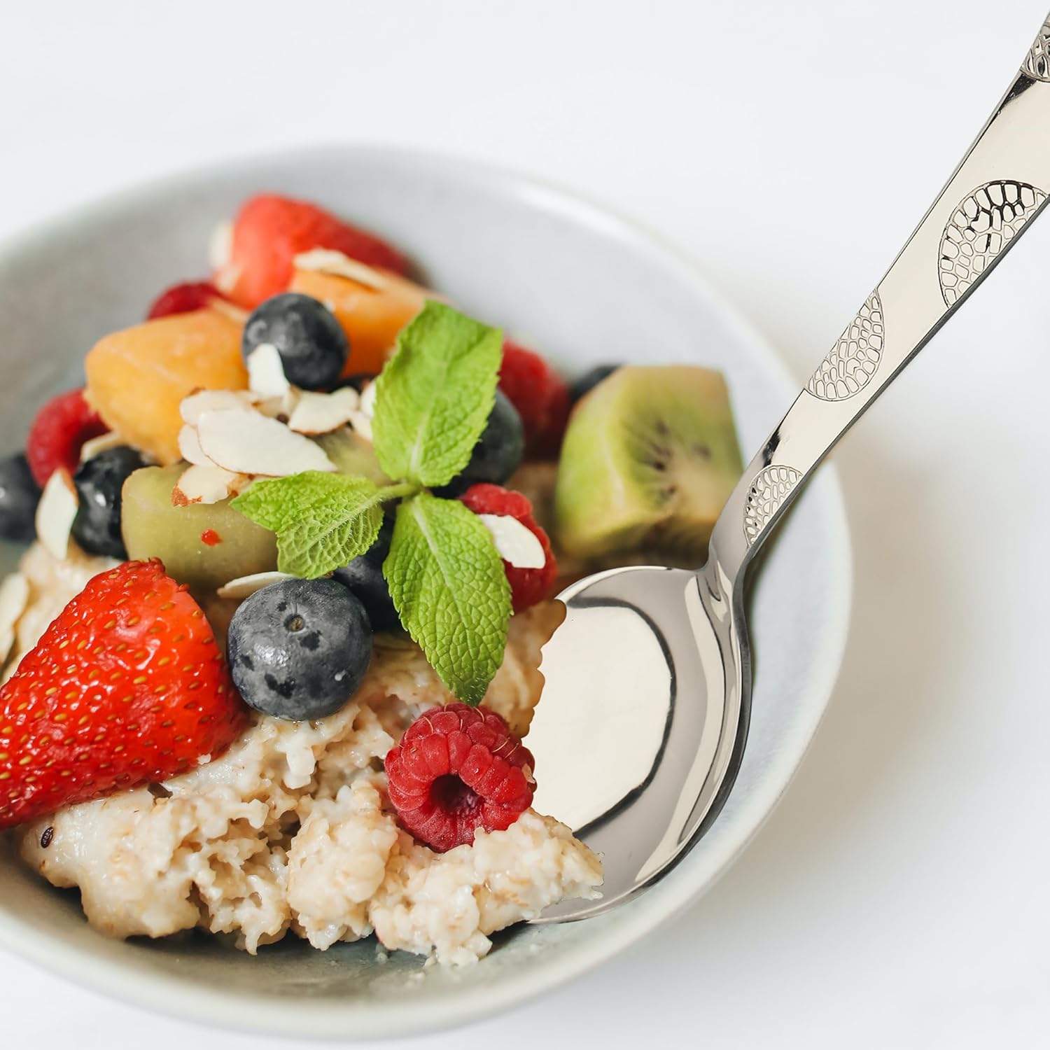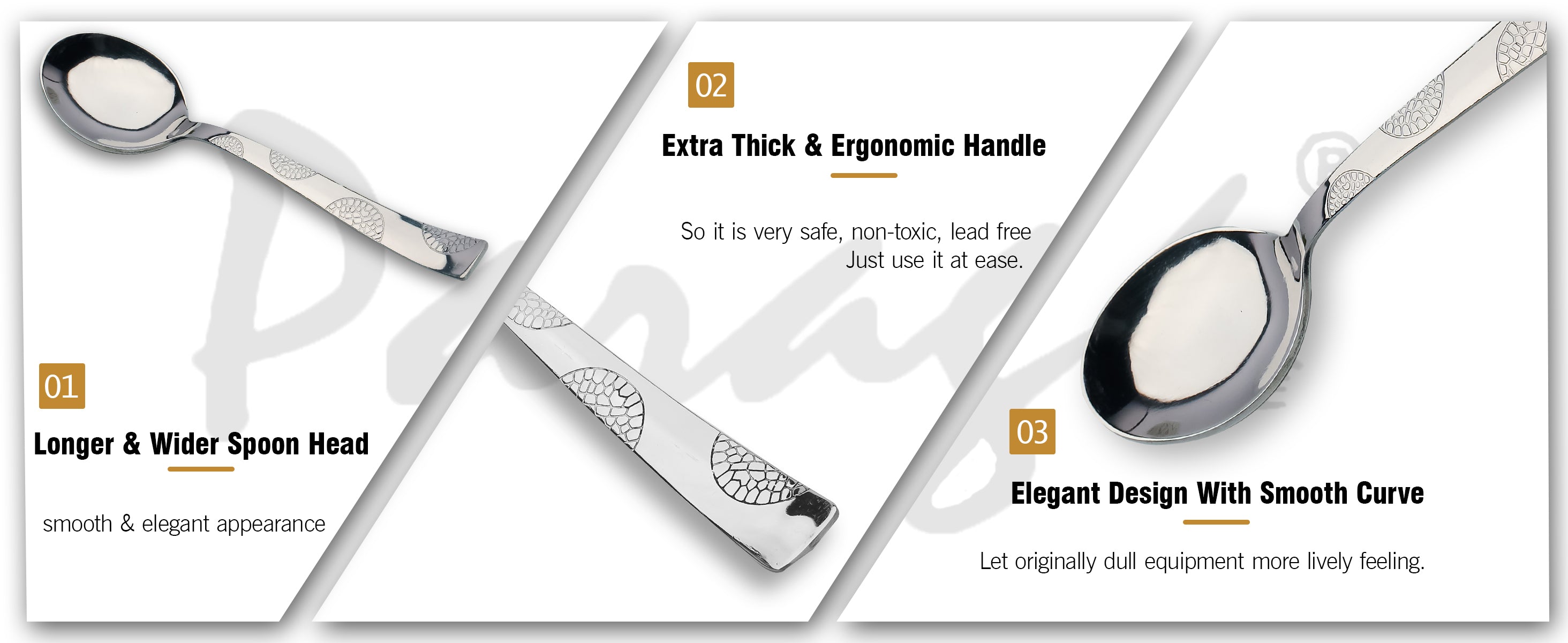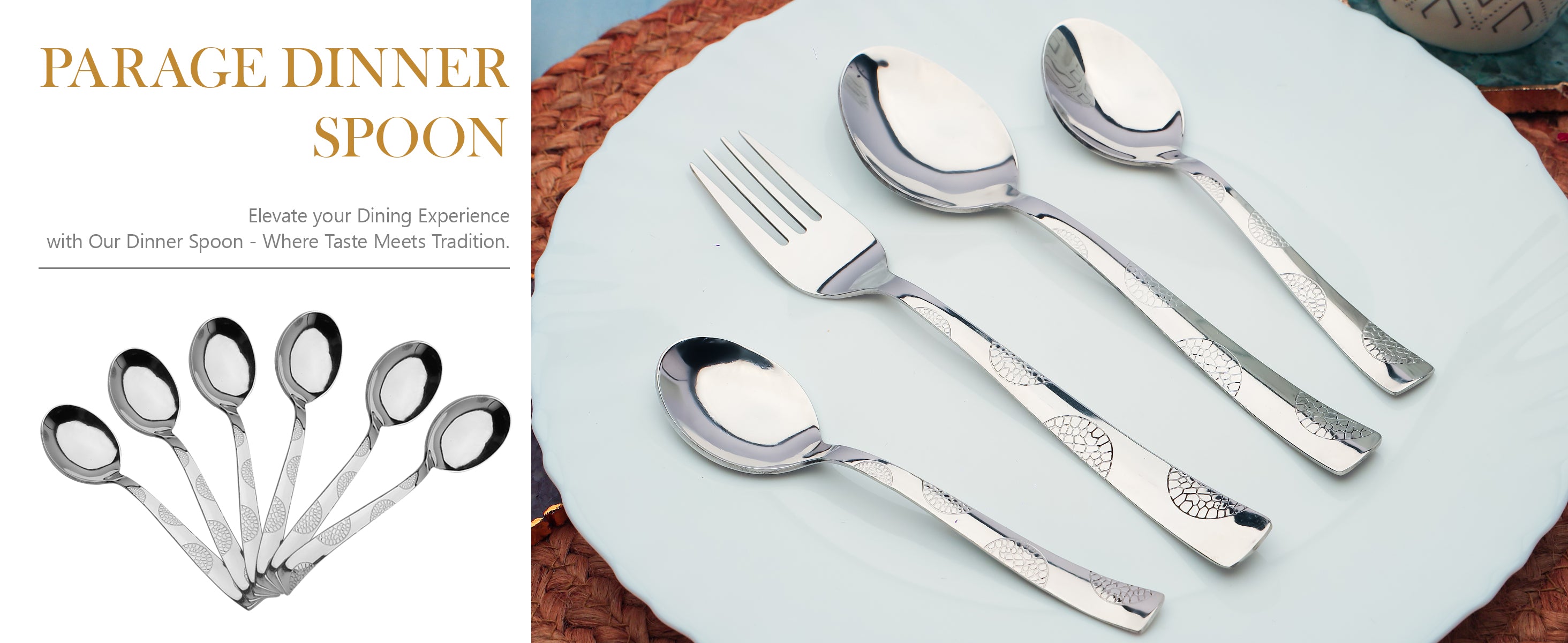 6 Pcs Stainless Steel Dinner Spoon Set – 15.5cm, Premium Spoons for Home & Kitchen, Luxury Tableware, Housewarming Gift, Silver, Moonpress Design