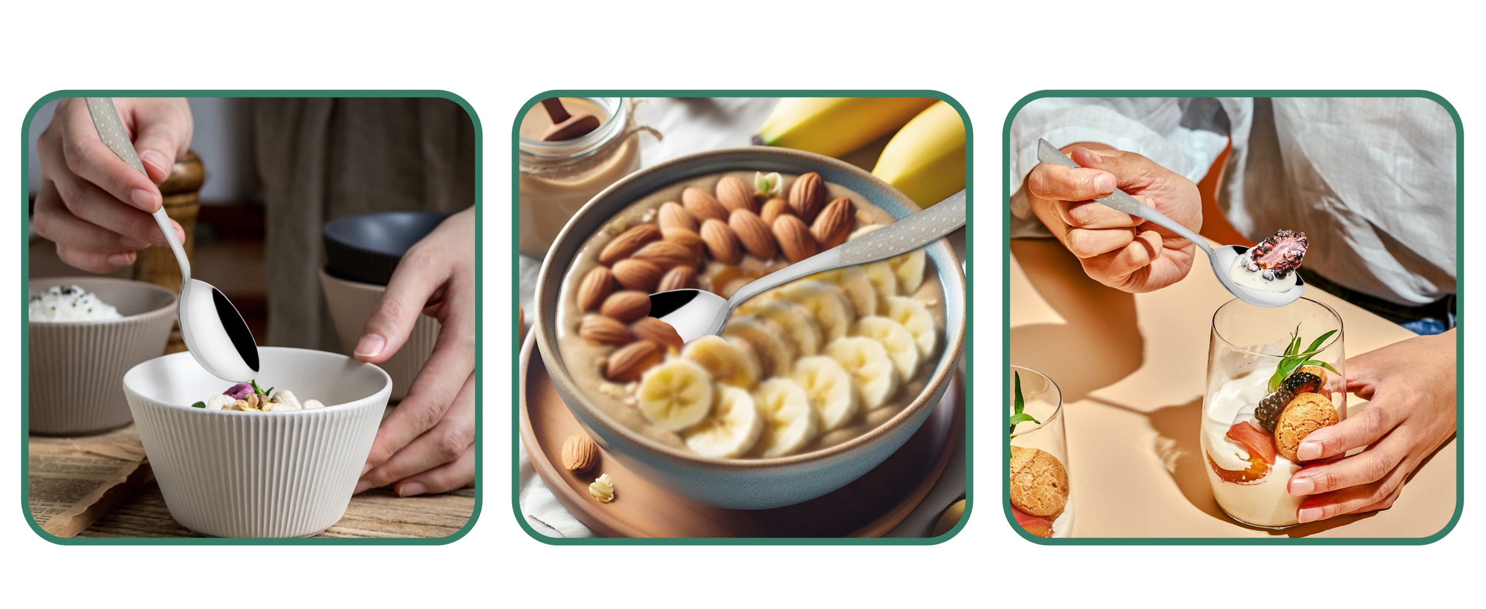 Elevate your dining experience with this 6-piece stainless steel dinner spoon set, designed for both home and kitchen use. Each 16 cm spoon features a sophisticated silver finish with a subtle dazzle pattern, blending durability with luxury. Crafted from premium stainless steel, these spoons resist rust and maintain their shine, making them ideal for everyday meals or special occasions. This set also serves as an elegant gift option, combining practicality with refined design to enhance any dining table.