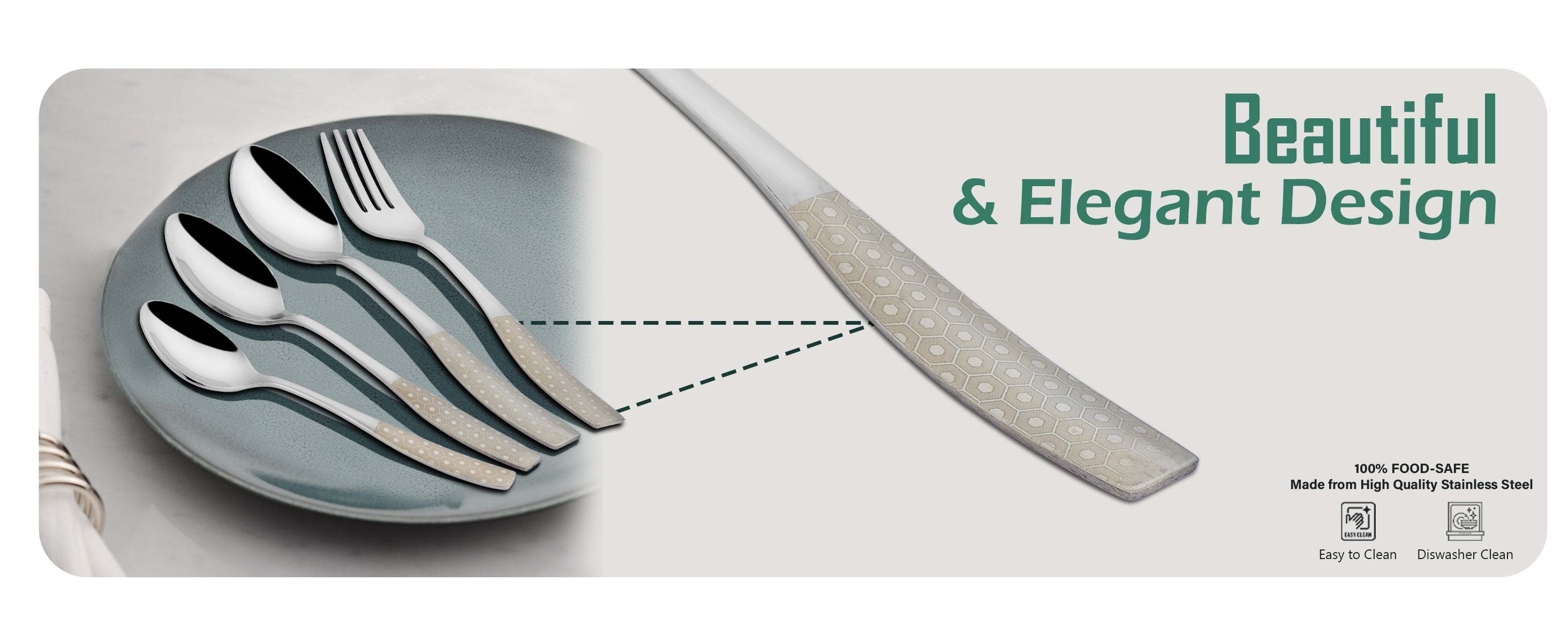 6 Pieces Stainless Steel Premium Dinner Spoon Set for Home & Kitchen – 16 cm Luxury Dining Tableware, Laser Chammach Set Gift, Silver with Dazzle Design
