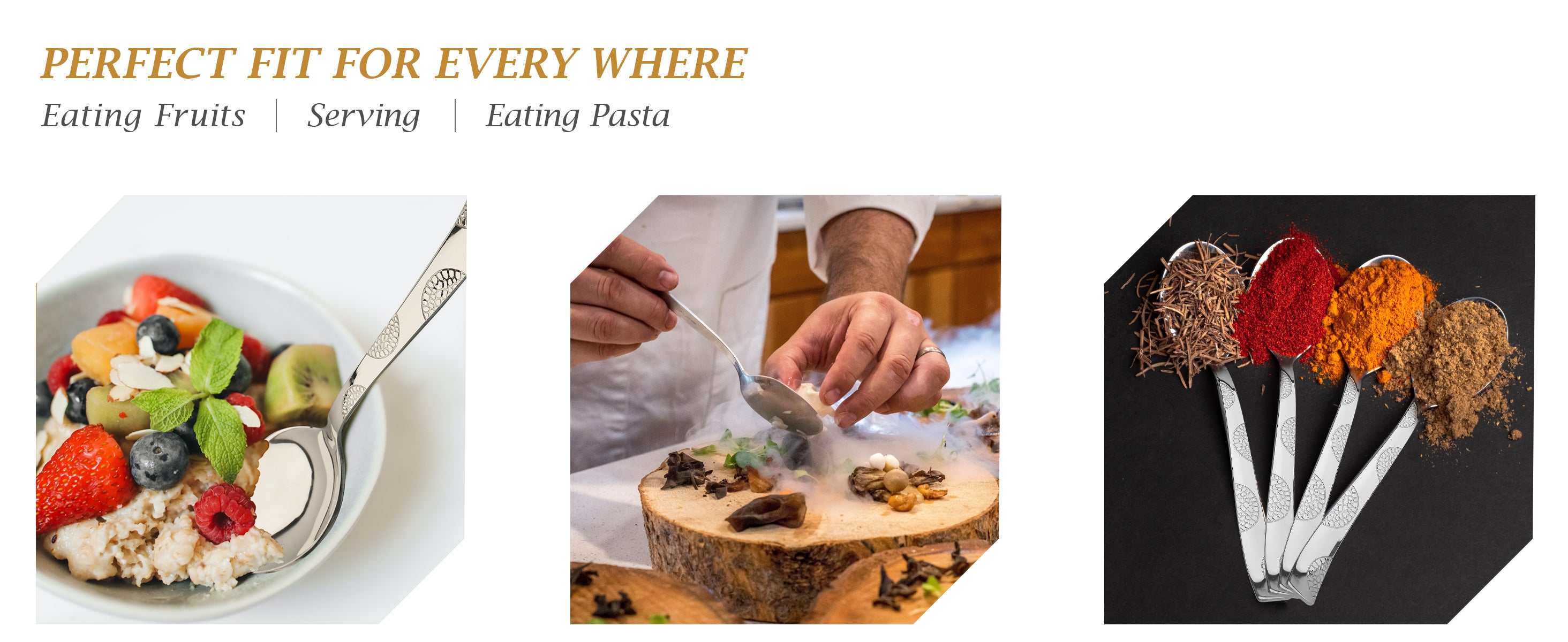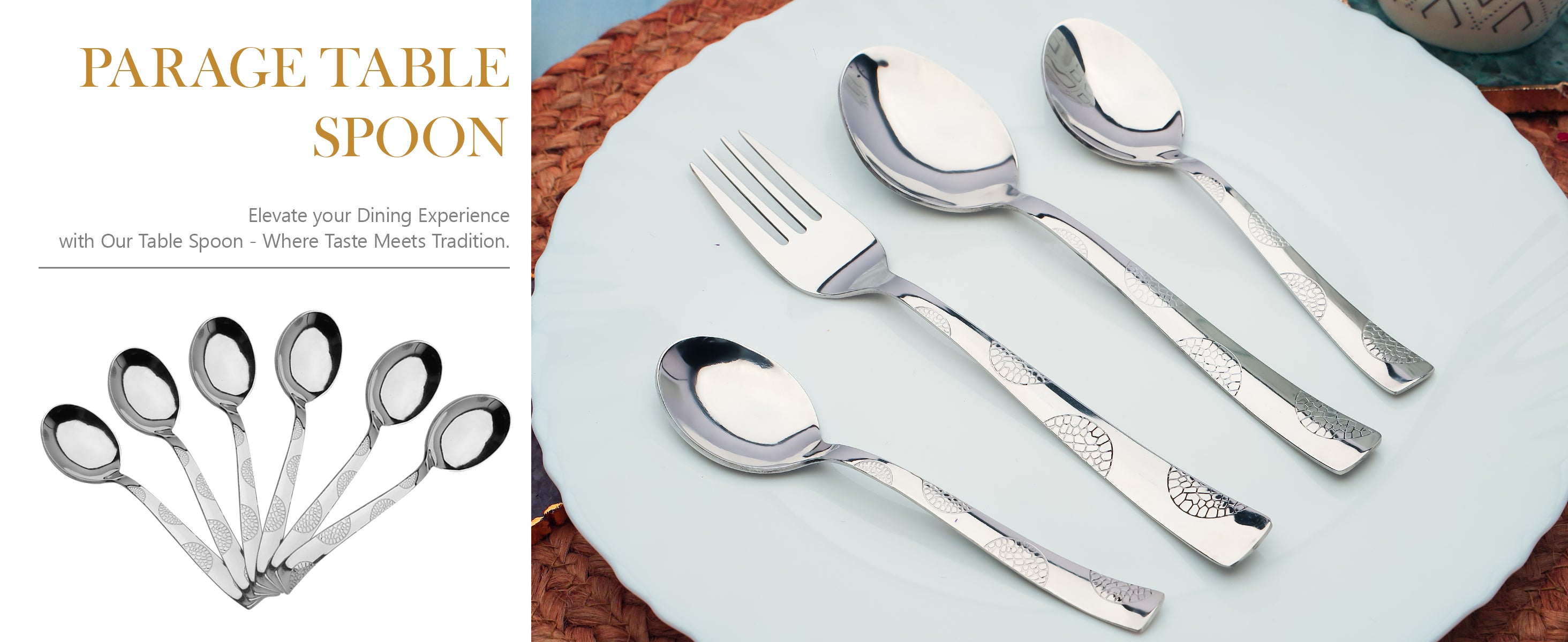 6 Pcs Stainless Steel Spoon Set – 18.5cm, Premium Large Spoons for Home & Kitchen, Luxury Tableware Cutlery, Housewarming Gift, Silver, Moonpress Design