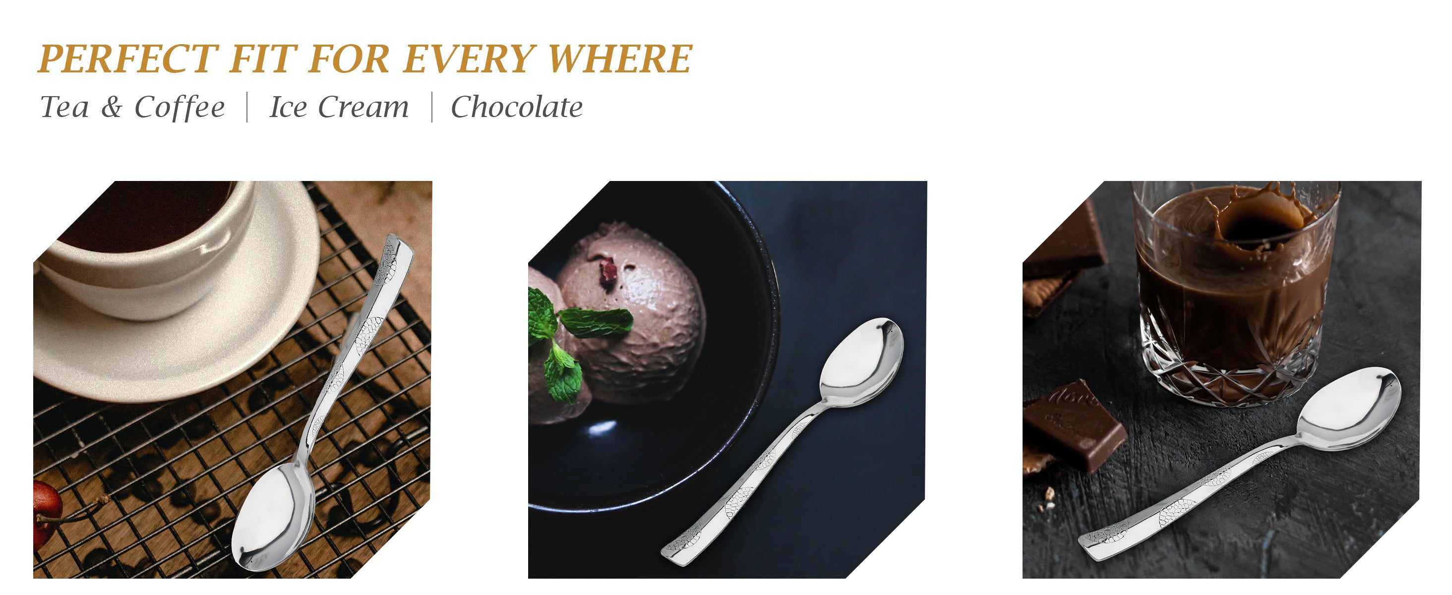 Parage 6 Pieces Stainless Steel Tea Spoons,14 cm Long, Premium Spoons Set for Home & Kitchen, Luxury Dinning Tableware Cutlery Set Gift for House Warming,6 Small Spoon, Silver Moonpress Design
