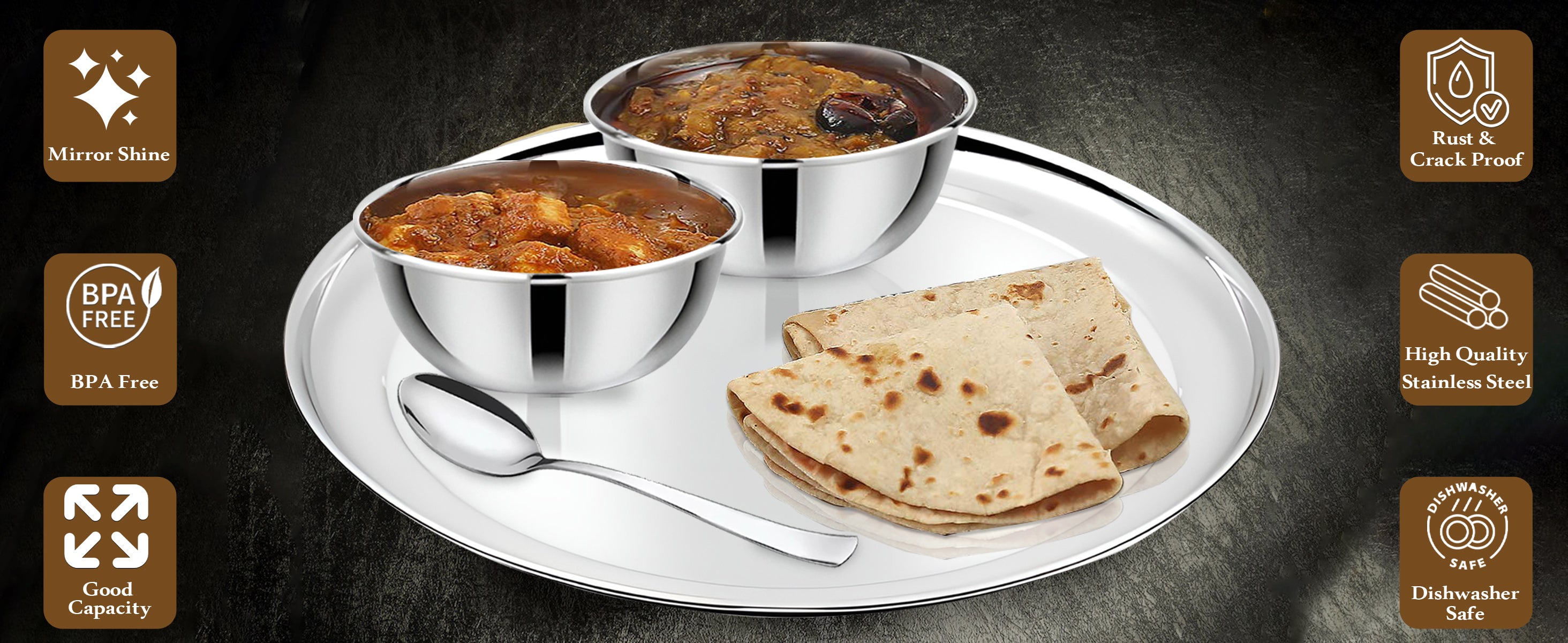 - DESIGNED FOR VERSATILITY: this set is perfect for a variety of uses, including family meals, restaurant service, and as return gifts for functions or pooja ceremonies. The bowls are non-toxic, BPA-free, and made from food-grade stainless steel, ensuring safe and healthy dining experiences.