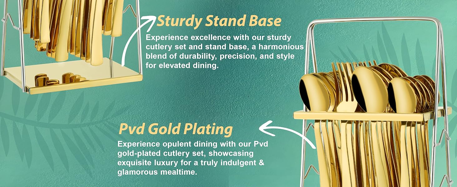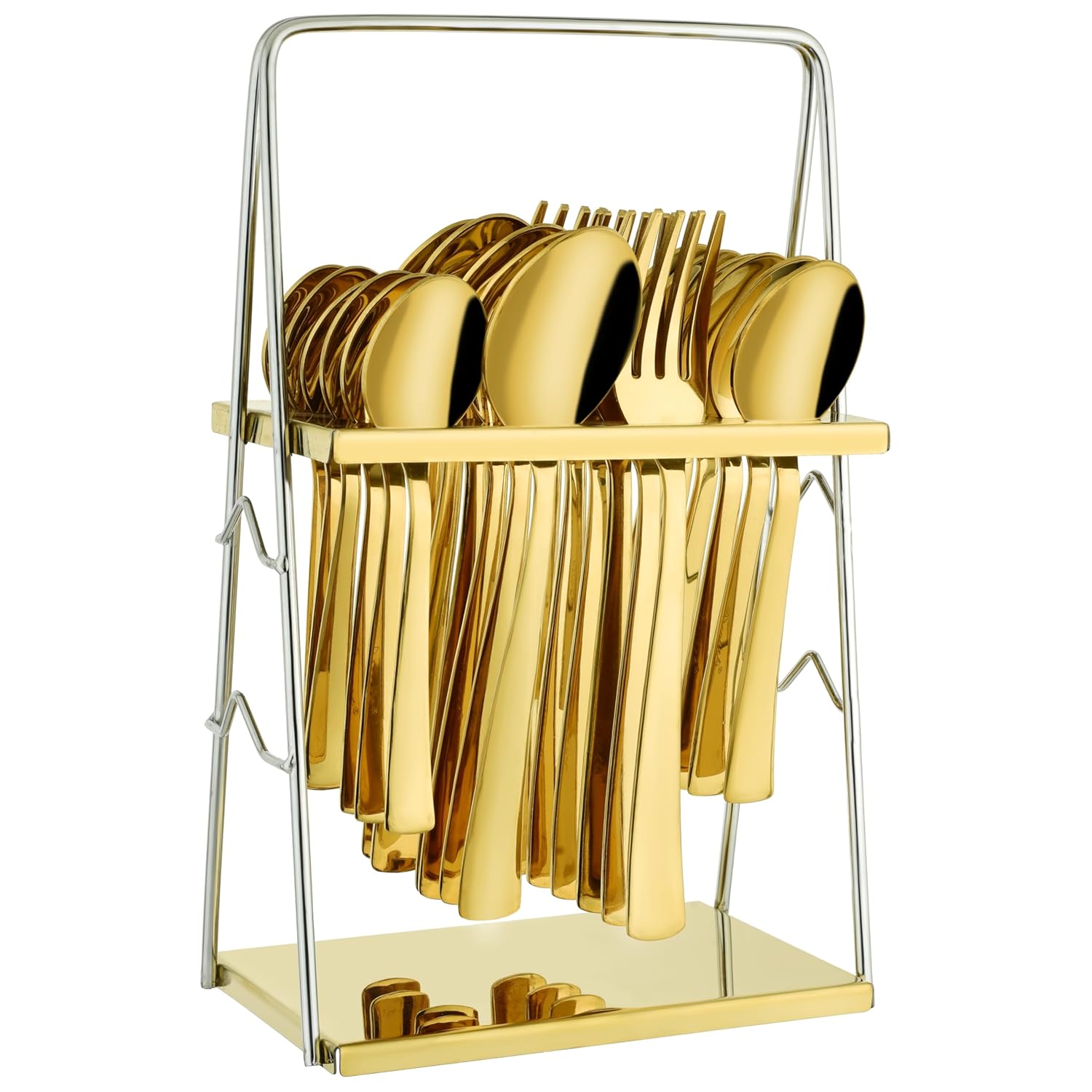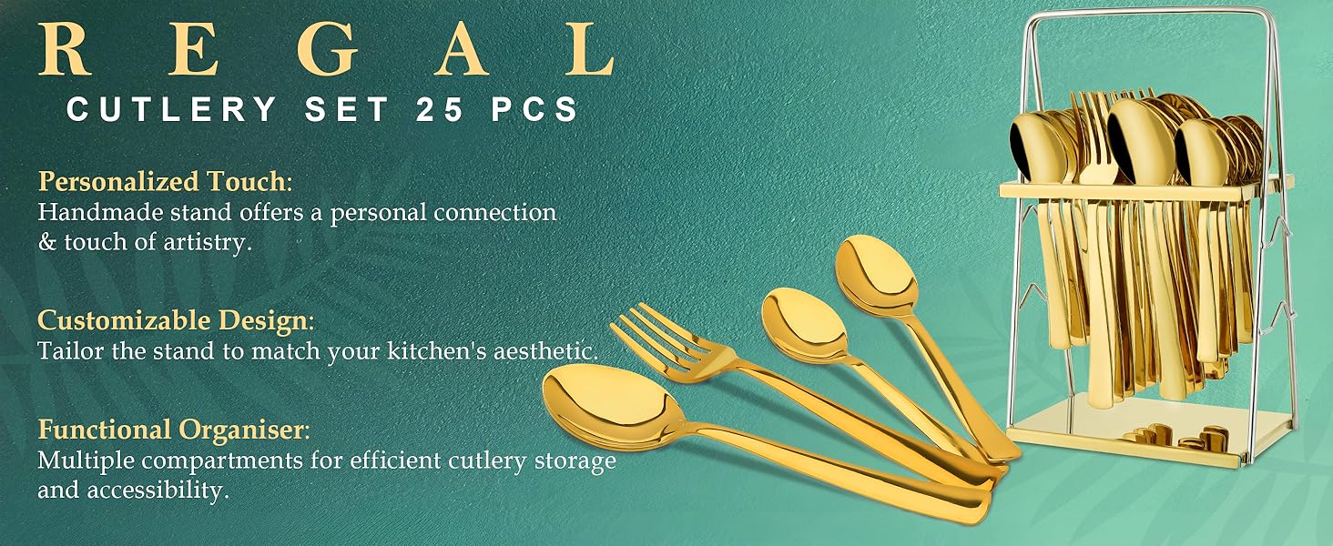 25 Pieces Regal Premium Stainless Steel Cutlery Set with Stand – Includes 6 Table Forks, 6 Table Spoons, 6 Dinner Spoons, 6 Tea Spoons, Stylish Spoon Set for Dining Table