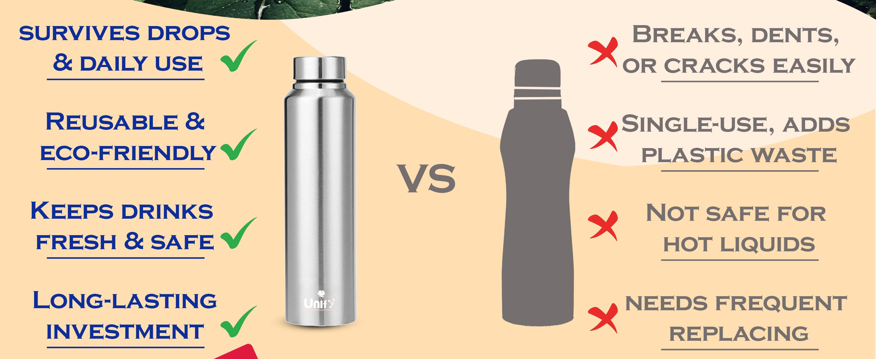 - HIGH-QUALITY 950 ml STAINLESS STEEL WATER BOTTLE - The Unify Stainless Steel Water Bottle is made from premium, rust-free, and BPA-free steel. With a 950 ml capacity, it is perfect for keeping hydrated at school, office, gym, or on outdoor adventures.