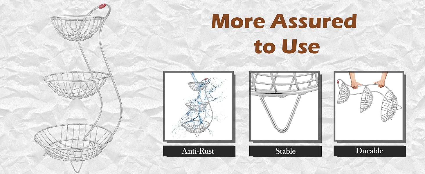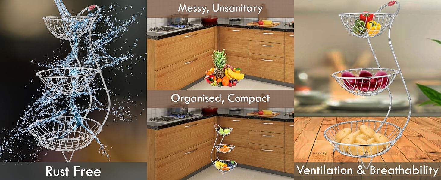 - β€ππππ πππ π πππ: This triple layer fruit basket will keep fruits and vegetables dry. Air circulate more freely, keeping fruits and vegetables to breath and stay fresh