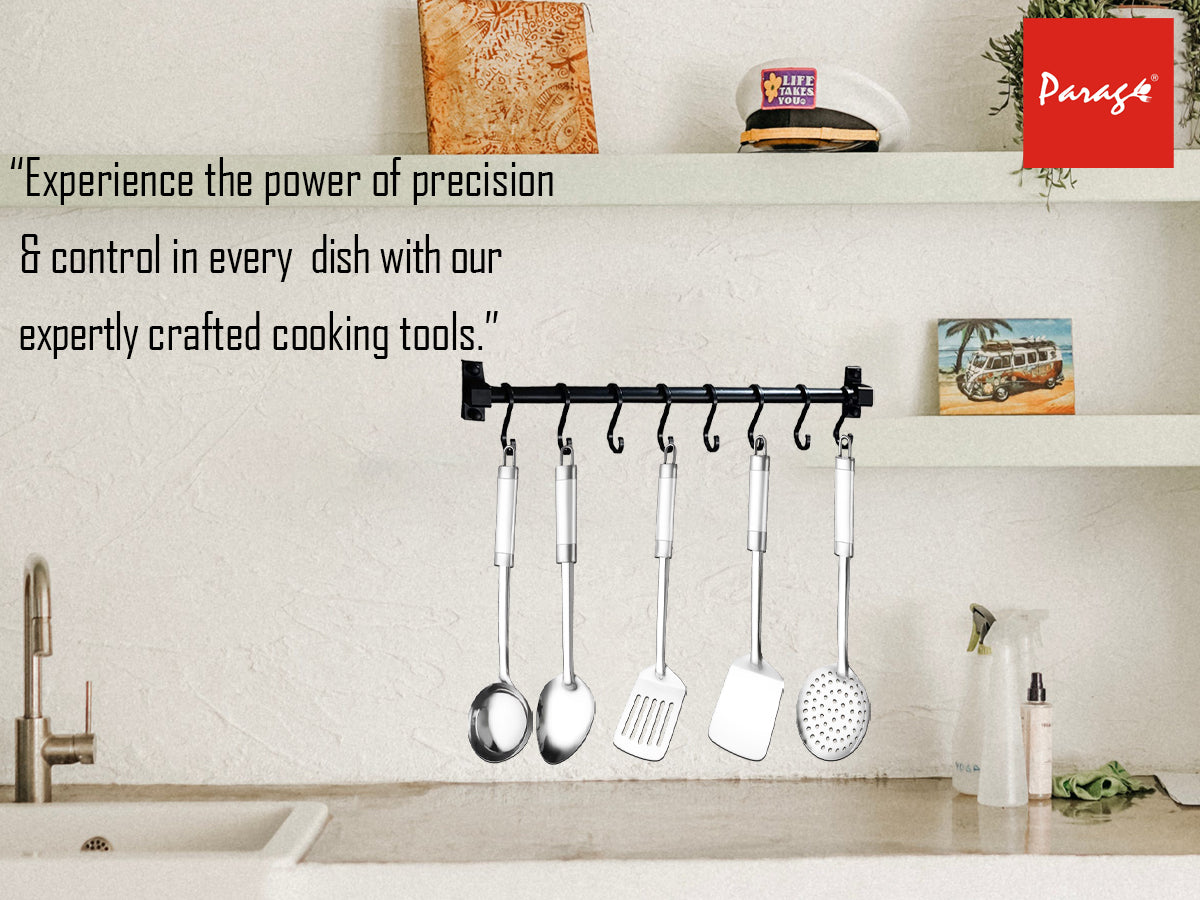- PACKAGE INCLUDE :- We are offering 1 steel kitchen accessories items- 1 Basting Spoon (Pan), (Size: 35.5 cms) for your cooking and serving needs.