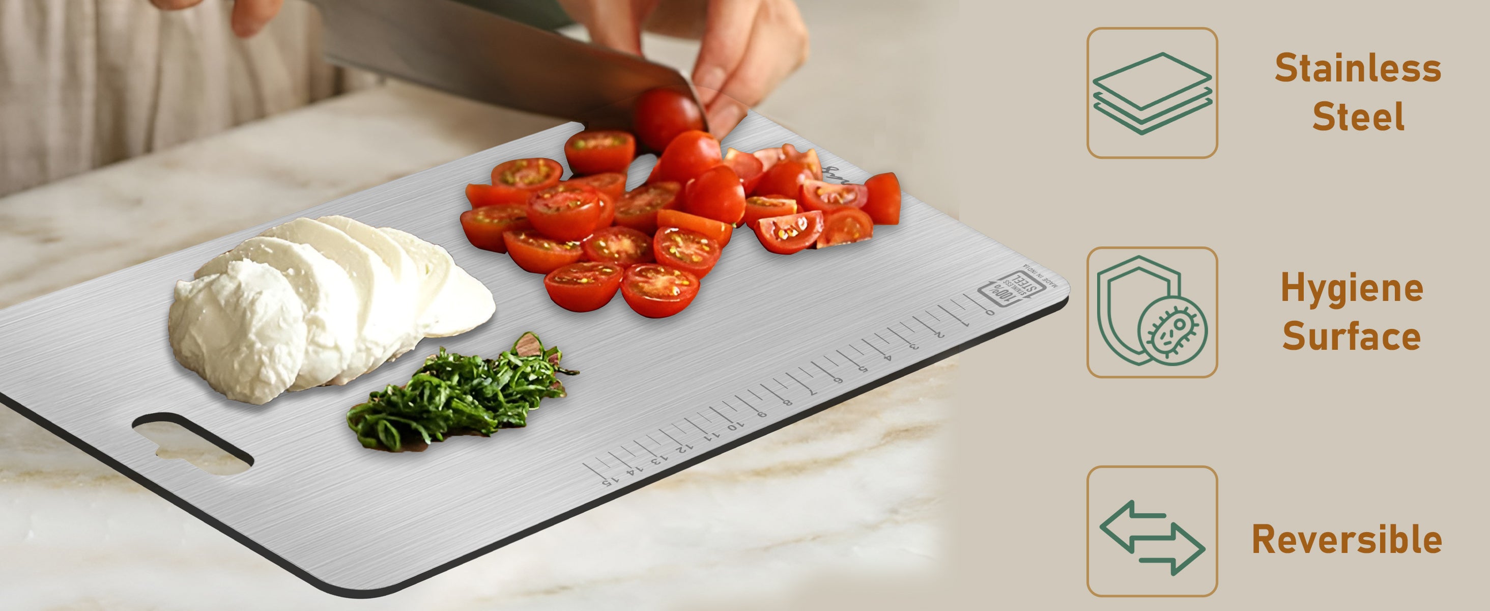Premium Stainless Steel Chopping Board – Large 35.5x25 cm, Heavy Duty & Rust-Free