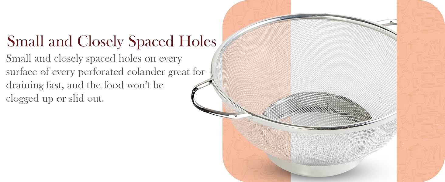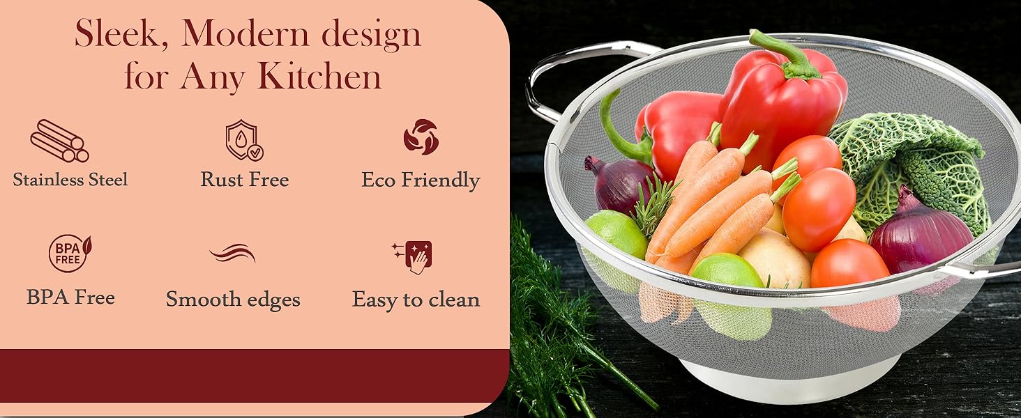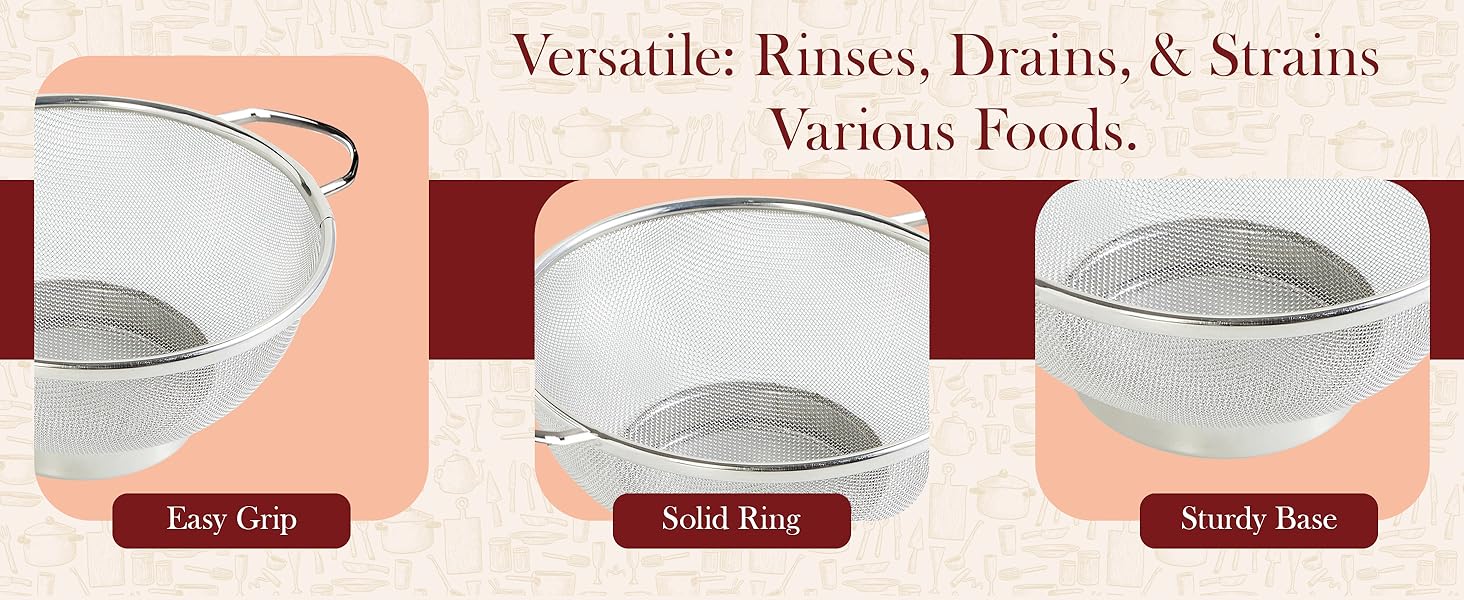 Stainless Steel Multipurpose Colander Basket | 25cm Strainer & Drainer Bowl with Handle - Ideal for Washing Rice, Fruits, Vegetables & Grains