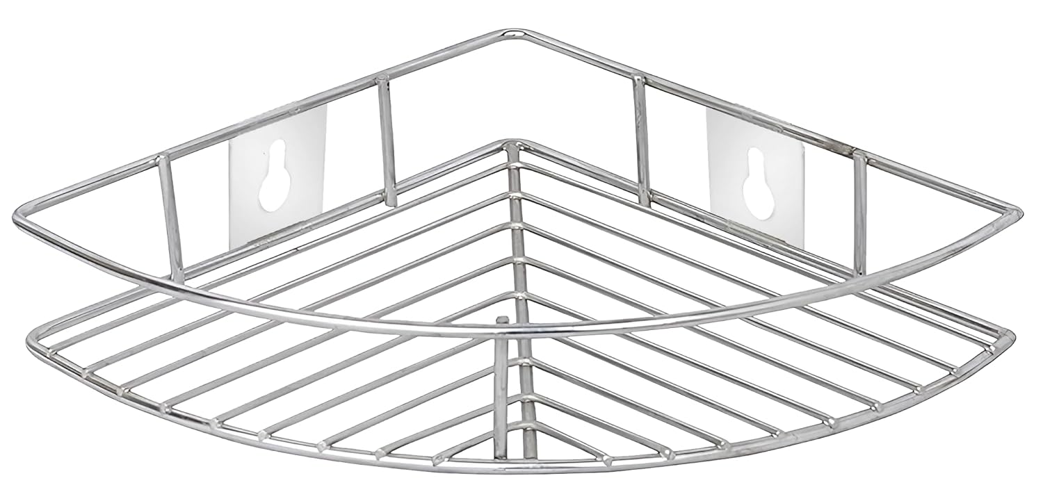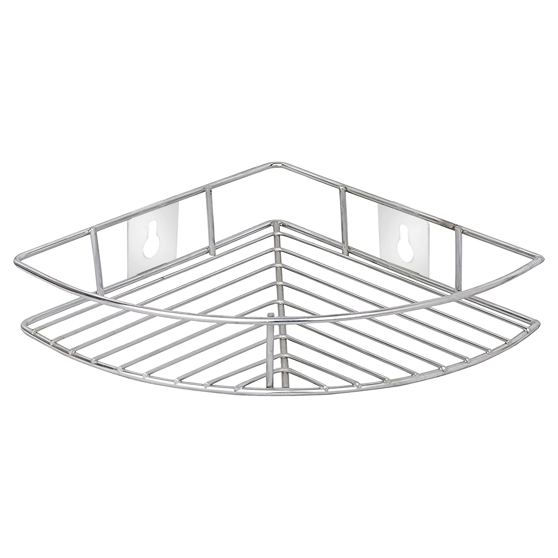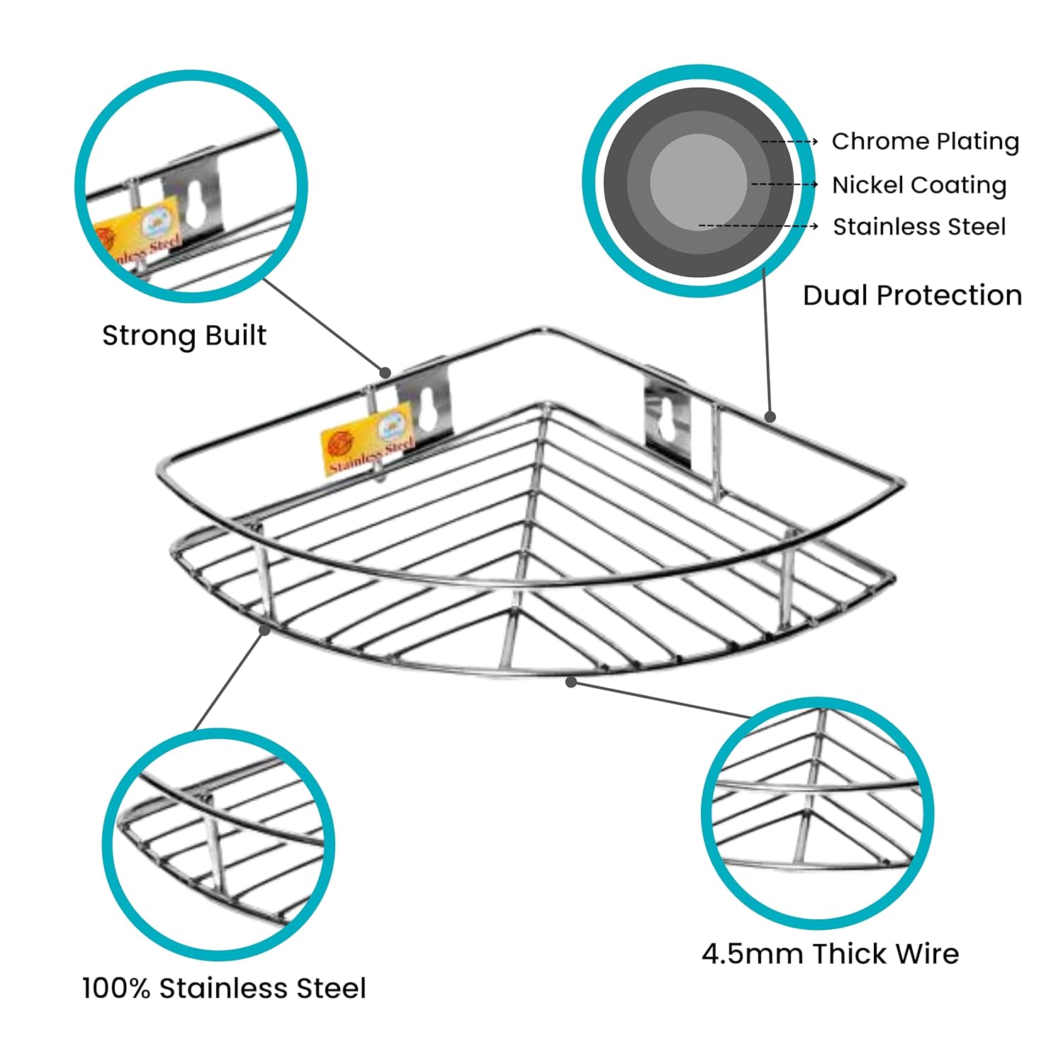 1 Pc Stainless Steel Multipurpose Corner Shelf Rack – Organizer for Kitchen & Bathroom, Wall-Mounted, 23×23×5 cm, Chrome Finish