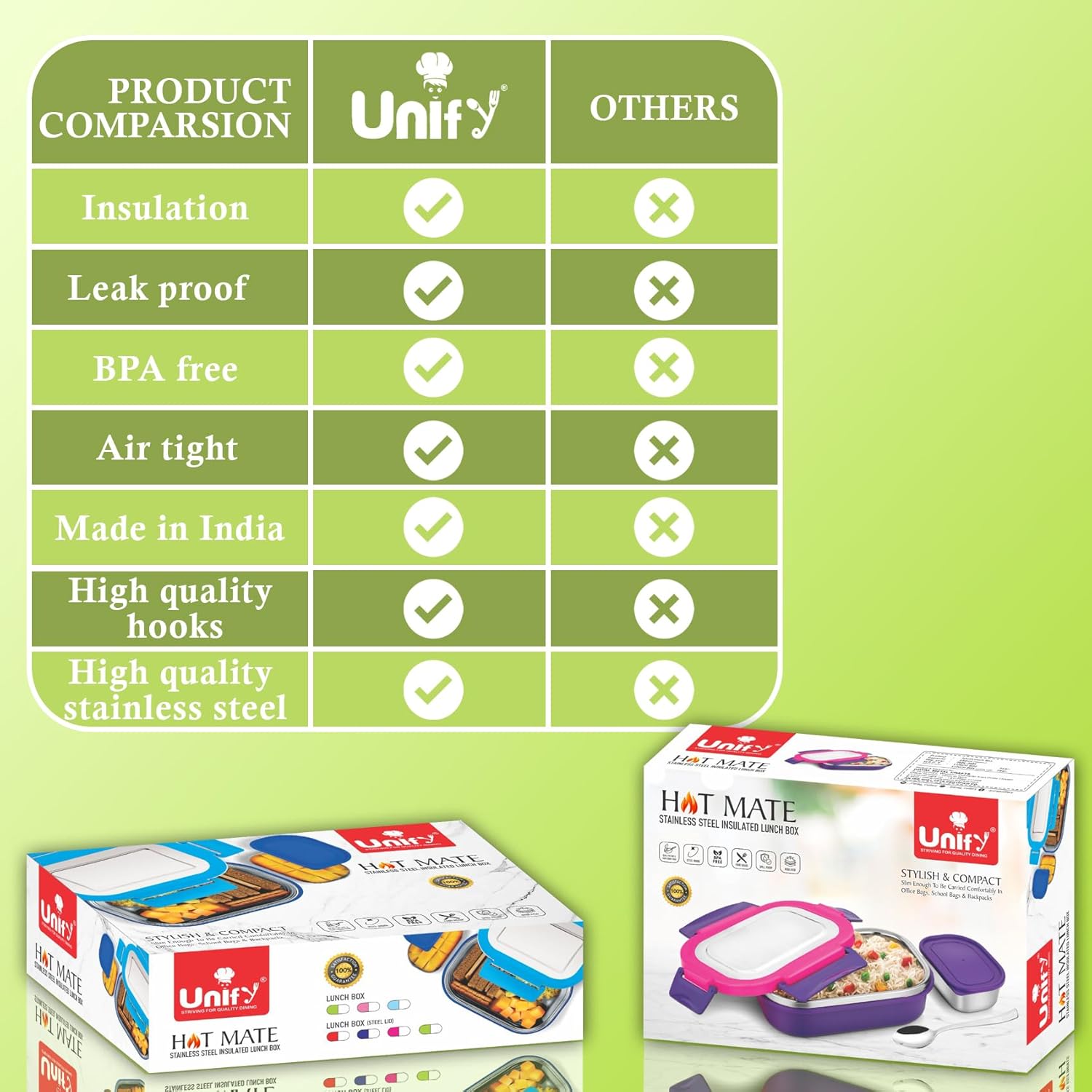 - INSULATED DESIGN: Unify stainless steel lunch boxes come with insulation to keep hot foods hot and cold foods cold for extended periods, ideal for packed lunches for office men and women.