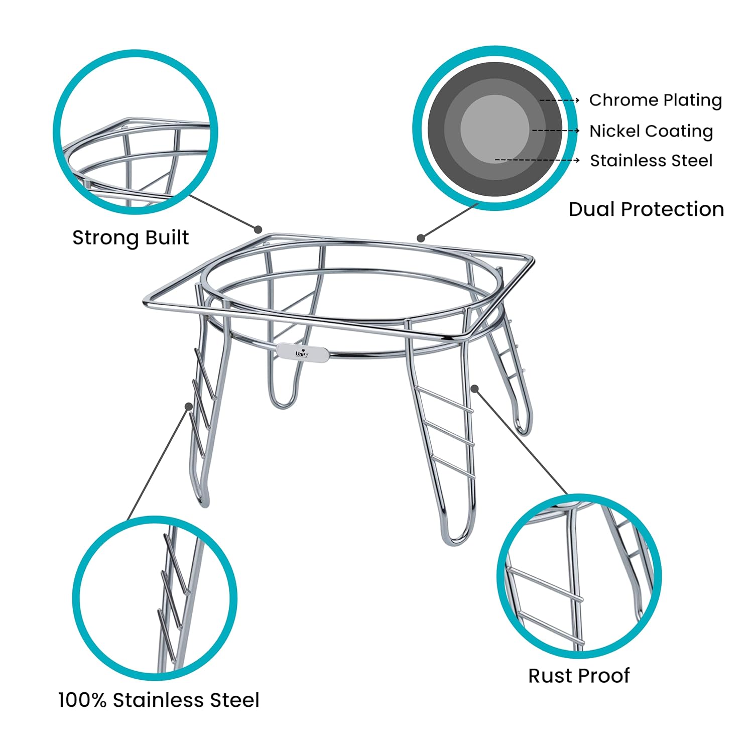 Stainless Steel Matka Stand | Heavy-Duty Pot Stand & Kitchen Organizer Chrome