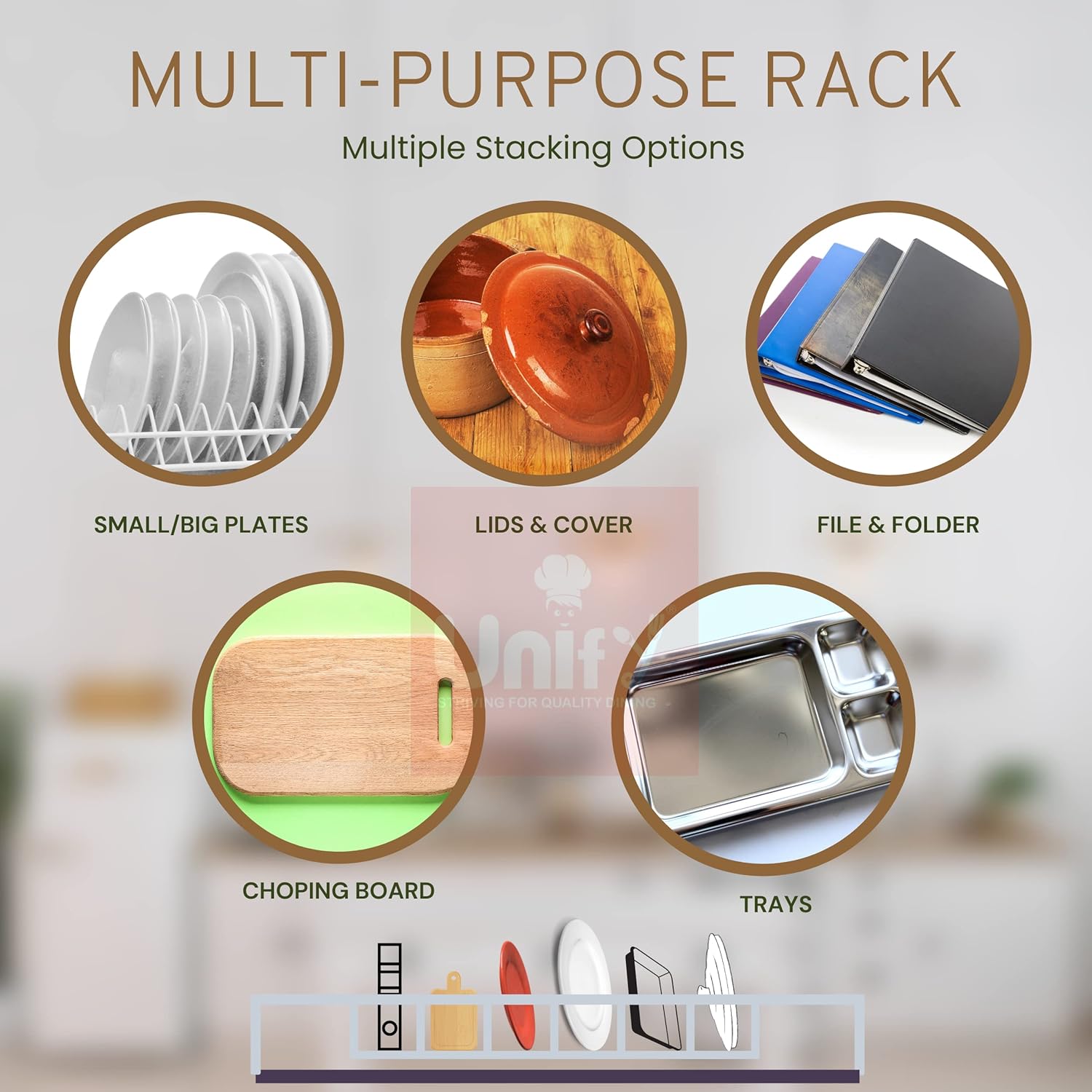Keep your kitchen organized with this stainless steel plate rack featuring 6 sections for plates, lids, or trays. Made from durable, rust-resistant steel with a chrome silver finish, it’s perfect for use on kitchen counters or inside cabinets for neat and efficient storage.