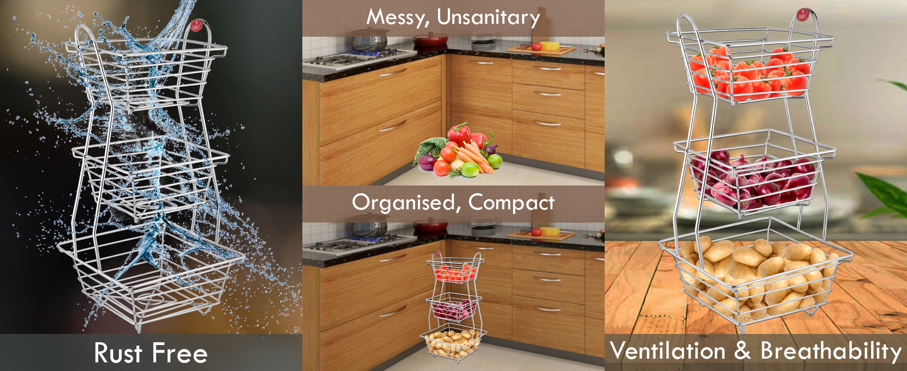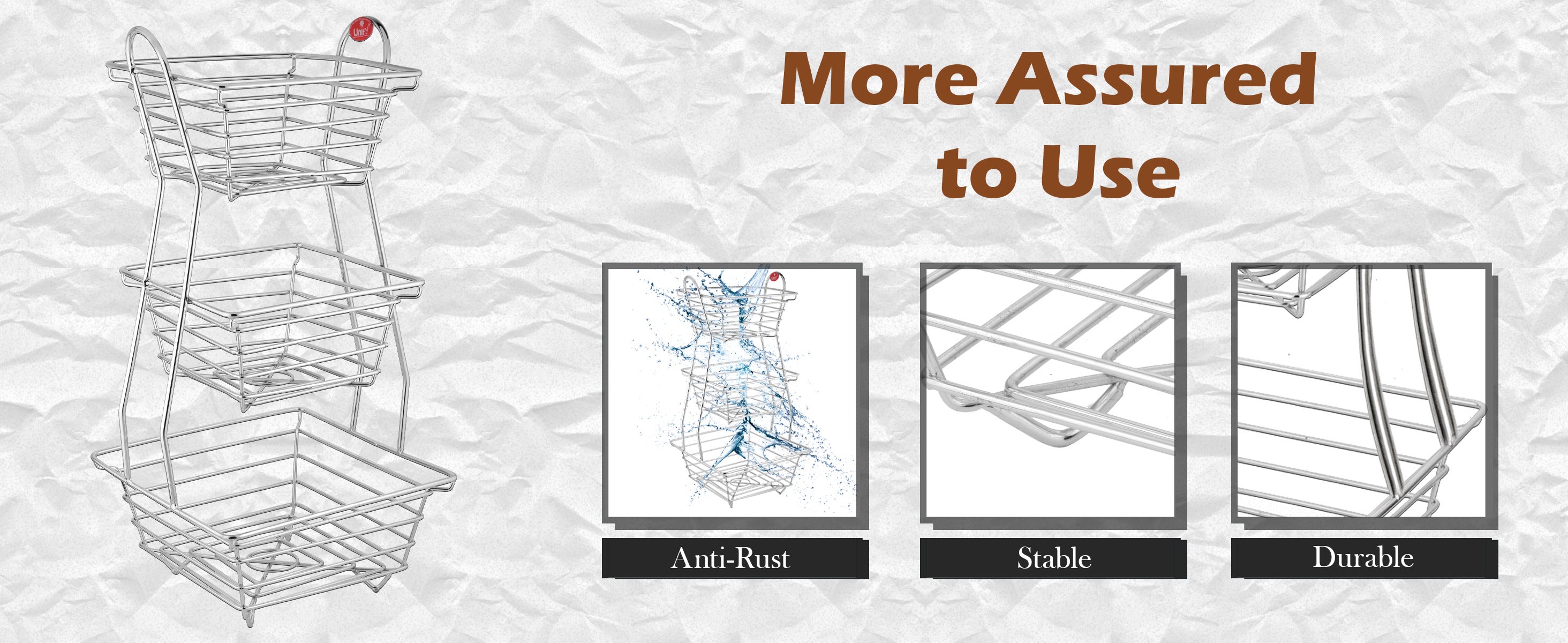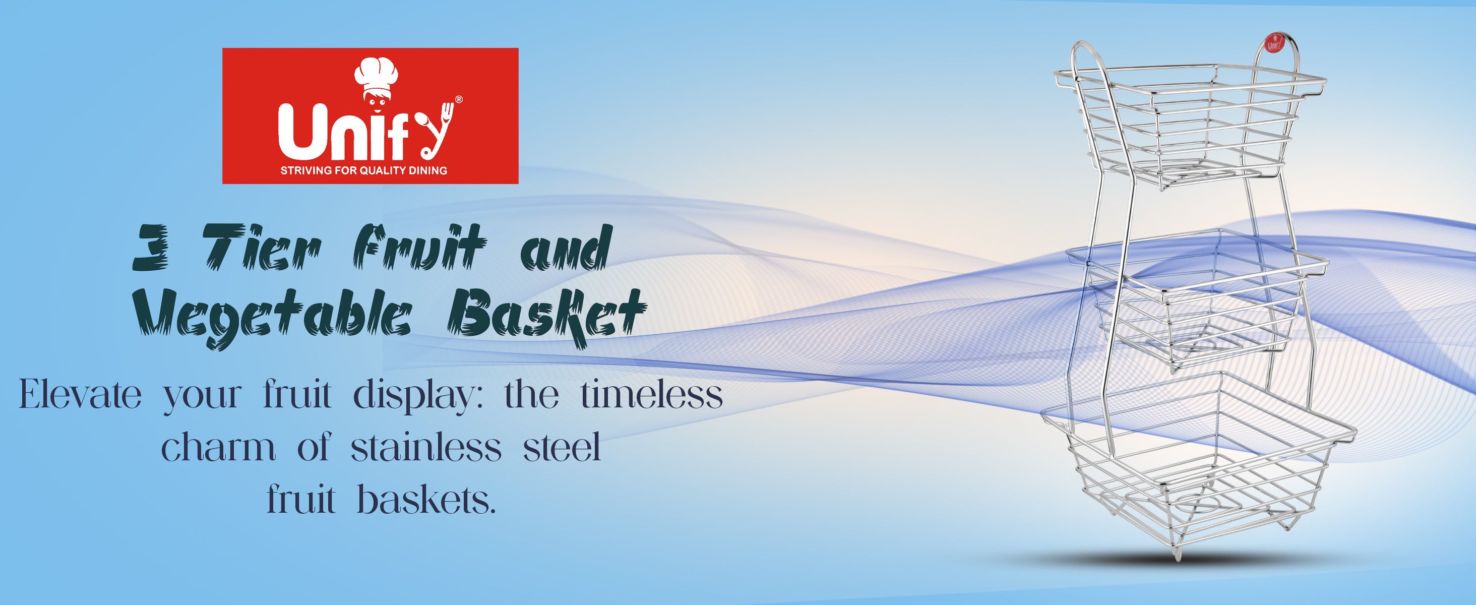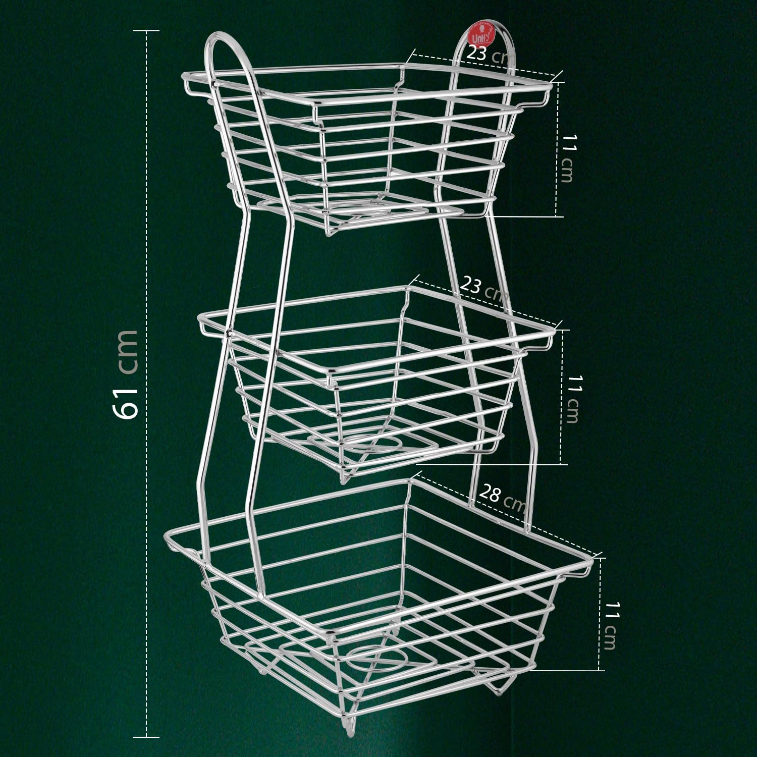 3-Tier Stainless Steel Fruit Basket – Square, Kitchen & Dining Table Stand