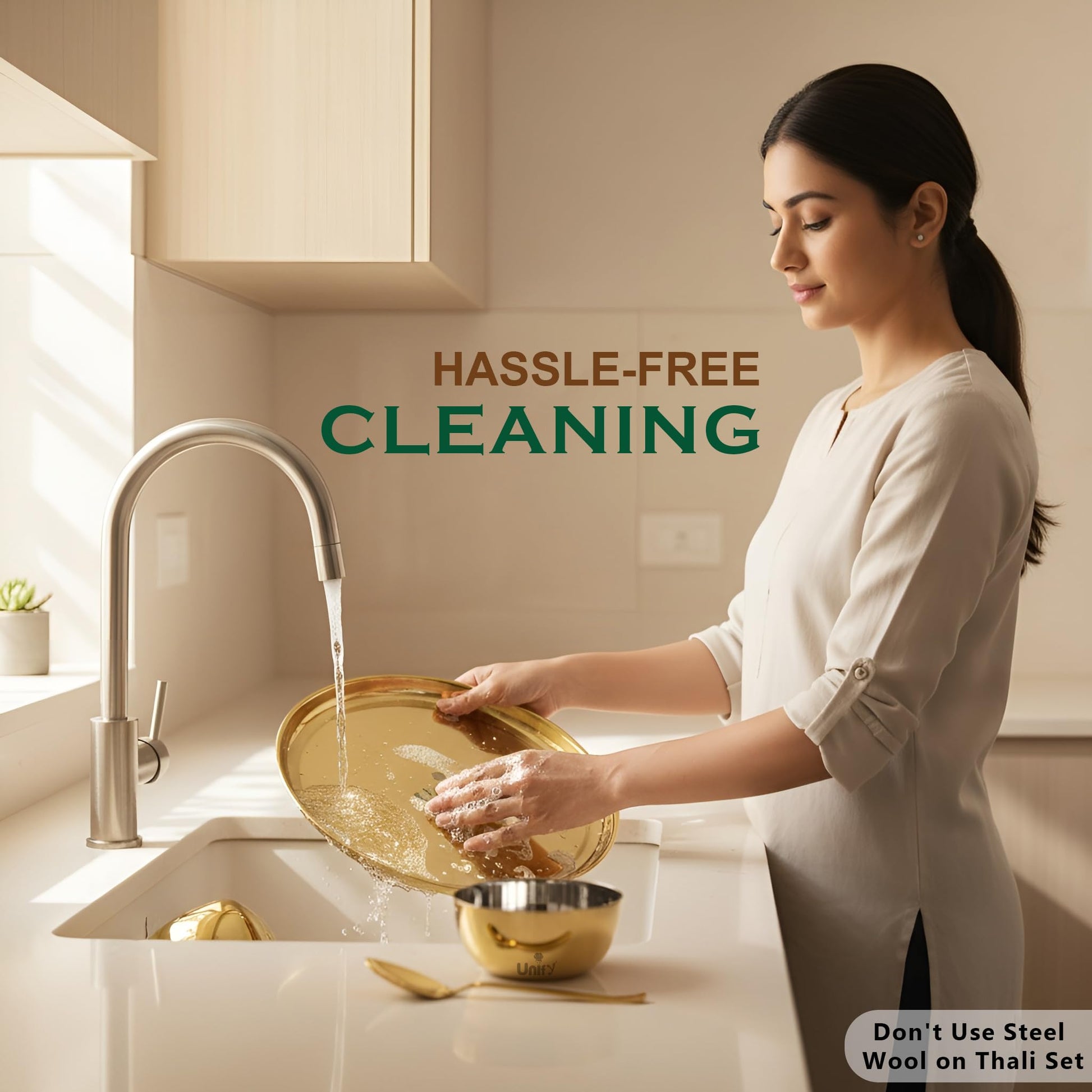 IDEAL GIFT FOR FESTIVALS & SPECIAL OCCASIONS:- The Parage PVD Gold Thali Set makes a perfect gift for Diwali, weddings, anniversaries, and housewarming ceremonies. Its luxurious golden shine and elegant design symbolize prosperity, tradition, and celebration.