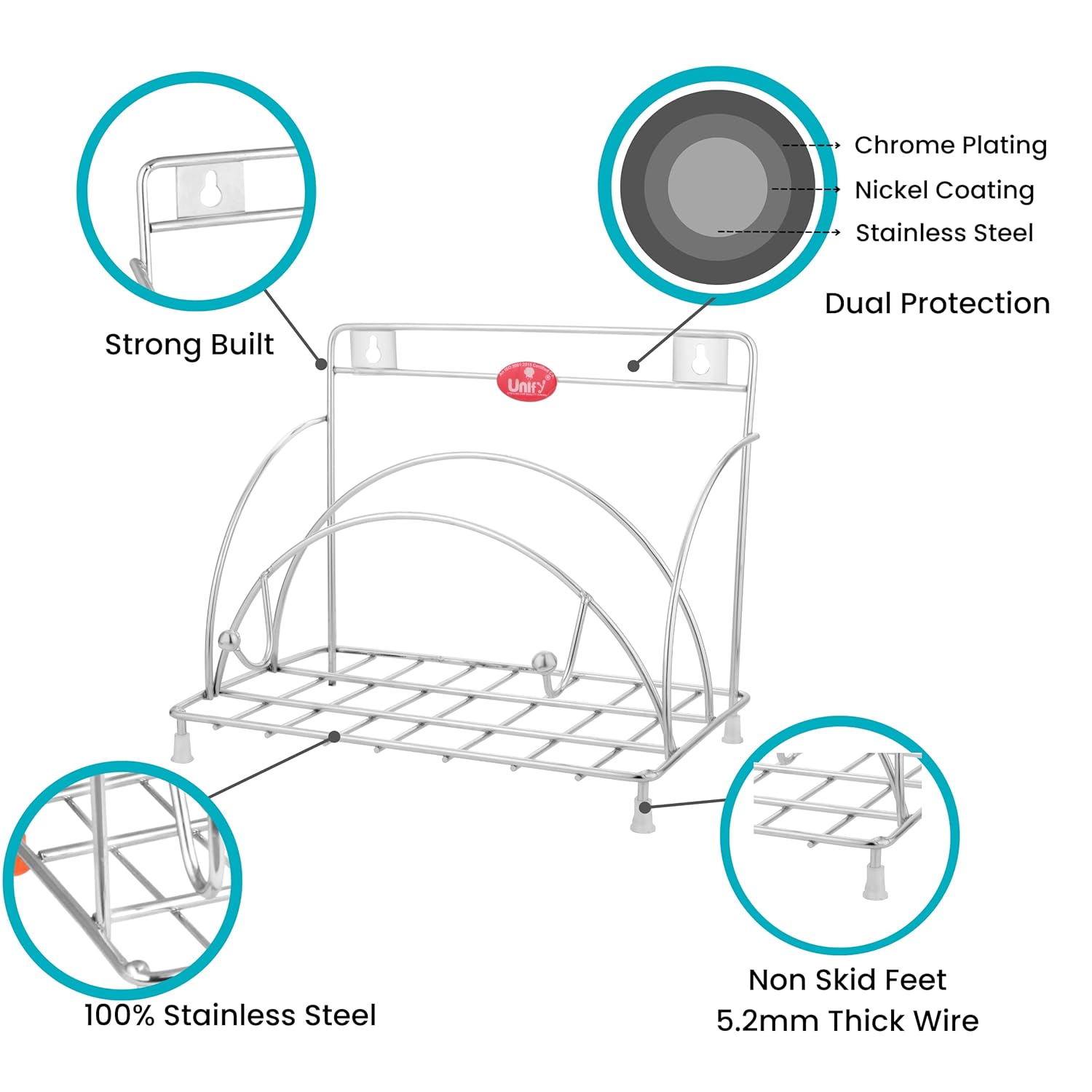 Keep your kitchen organized with this Stainless Steel Round Chakla Belan Tawa Stand. Designed to neatly hold rolling pins, boards, and tawas, it serves as a versatile countertop or corner shelf organizer. Made from premium rust-resistant stainless steel with a chrome finish, it offers strength, stability, and a sleek modern look—perfect for maximizing kitchen space and convenience.
