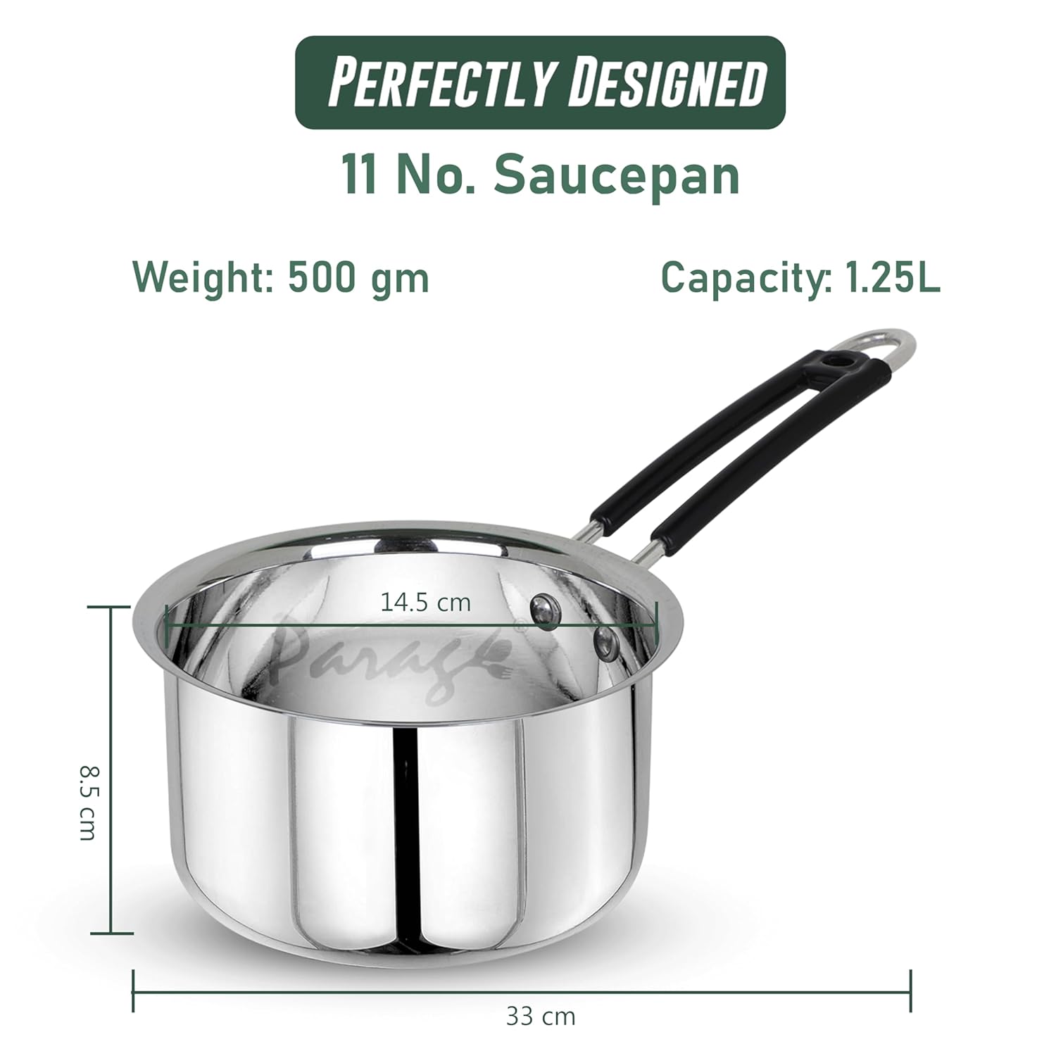 Stainless Steel Saucepan | 1.25L Heavy Gauge | Silver