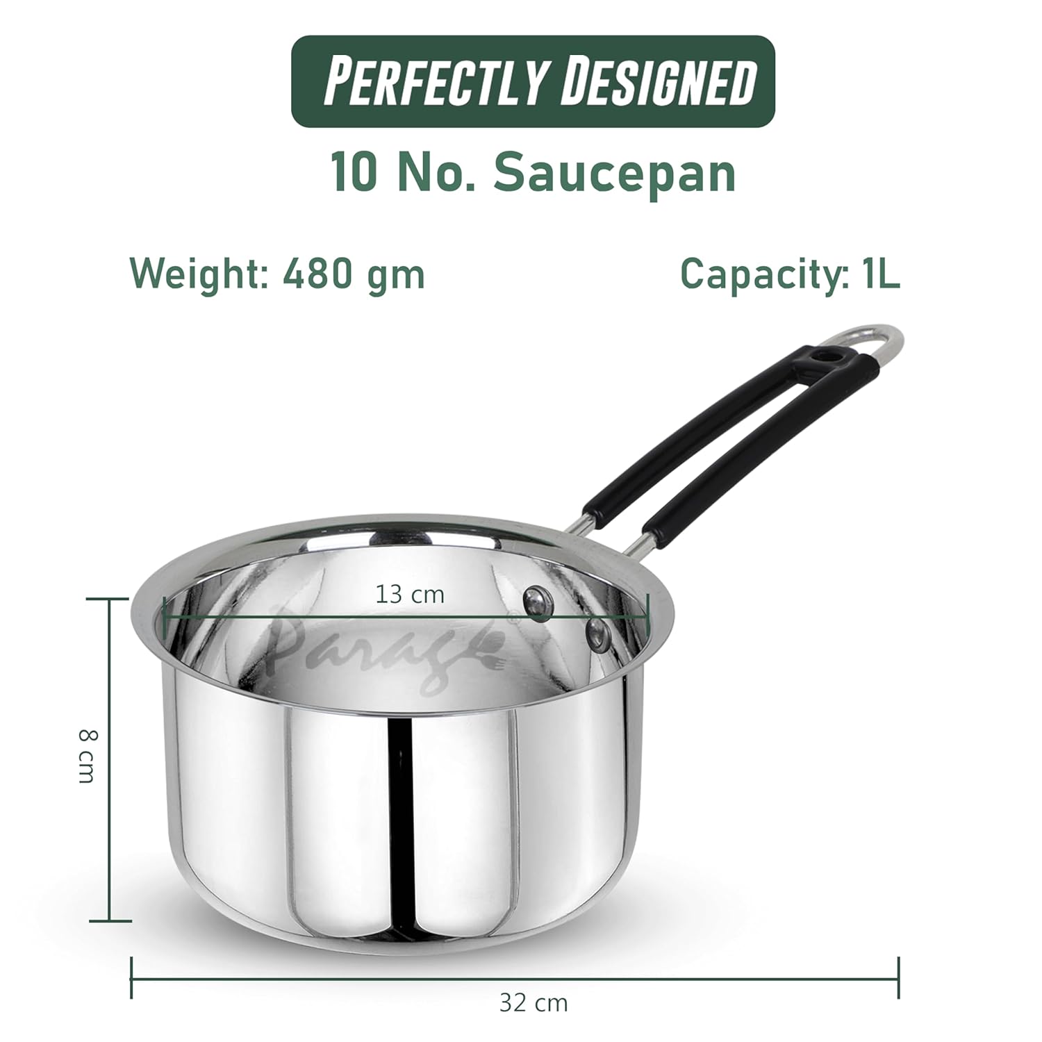 Crafted from heavy-gauge stainless steel, this 1-liter saucepan offers excellent durability and even heat distribution for precision cooking. Its sleek silver finish resists corrosion and ensures lasting performance, making it ideal for sauces, heating, and small-batch cooking. The sturdy construction provides reliable heat retention, while its compact size fits conveniently on any stove, supporting efficient meal preparation with expert control.