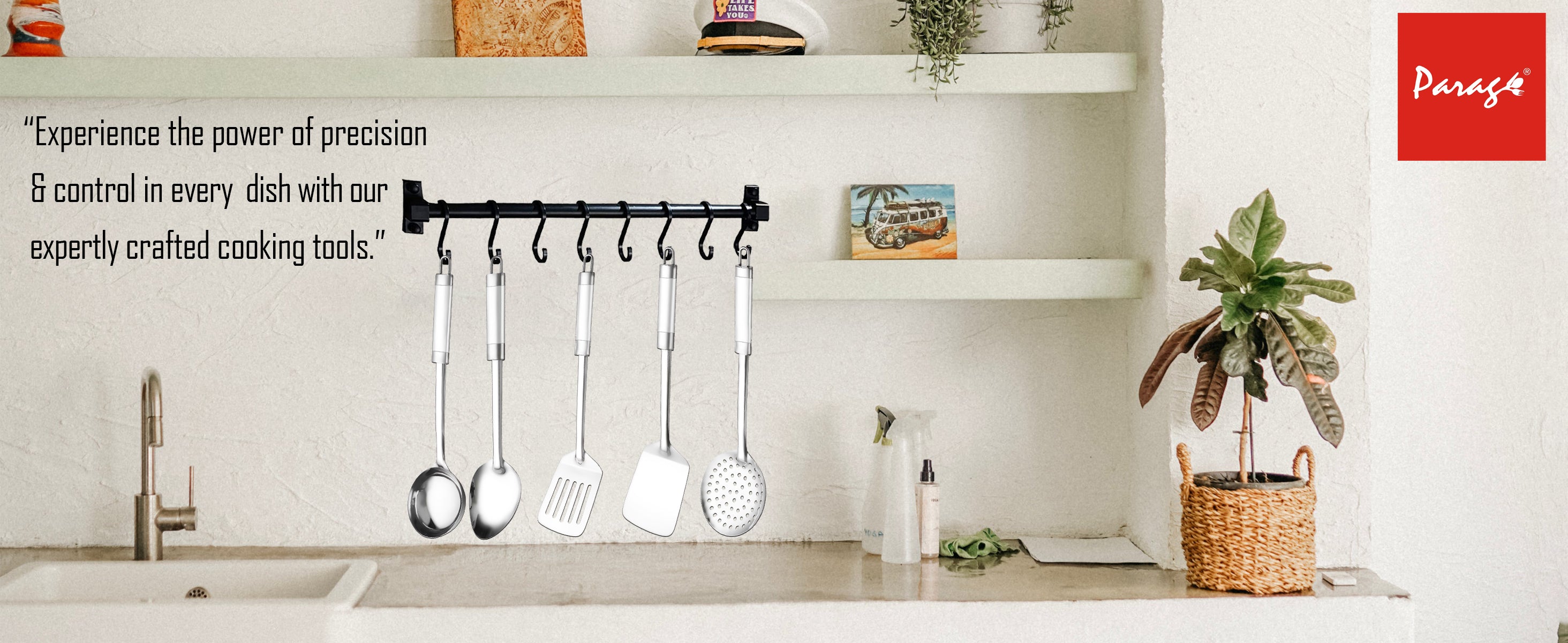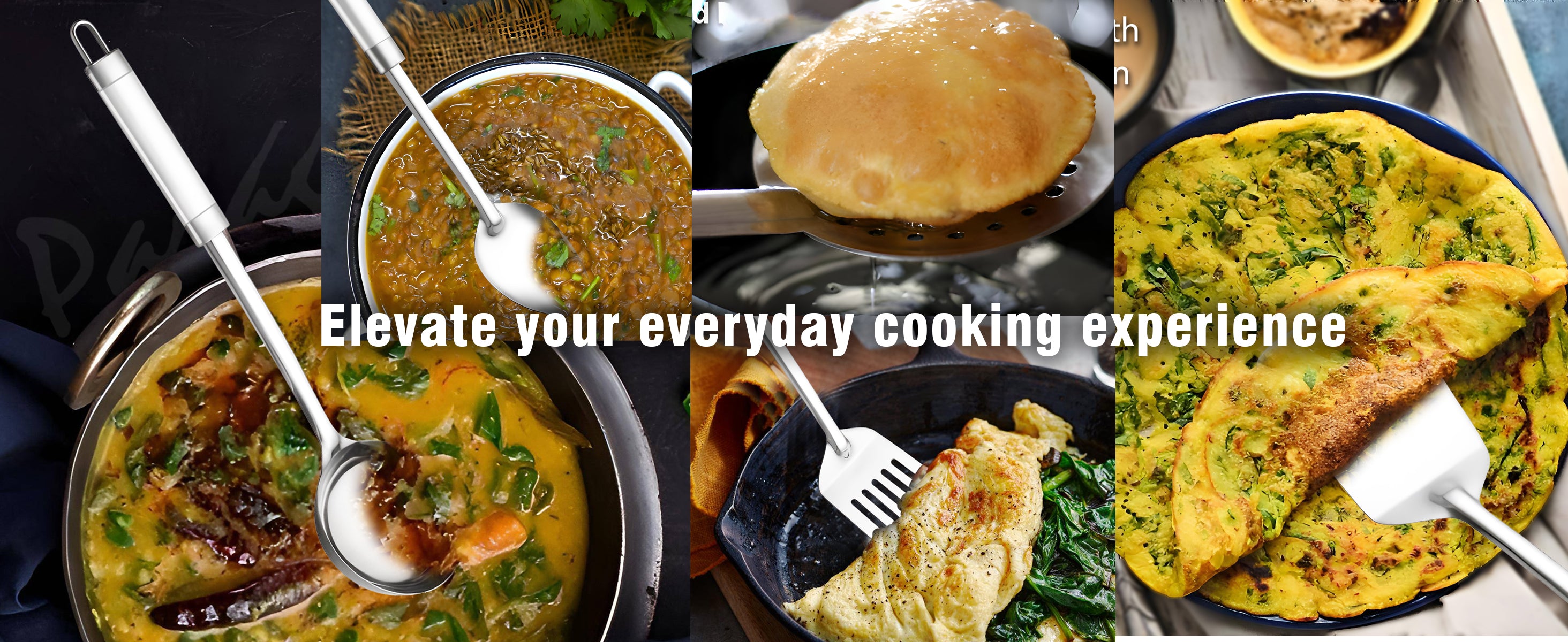 - LADLE (KARCHHI): Designed with a deep bowl and long handle for easy scooping, stirring, and pouring of liquids, ensuring efficient food preparation and serving.