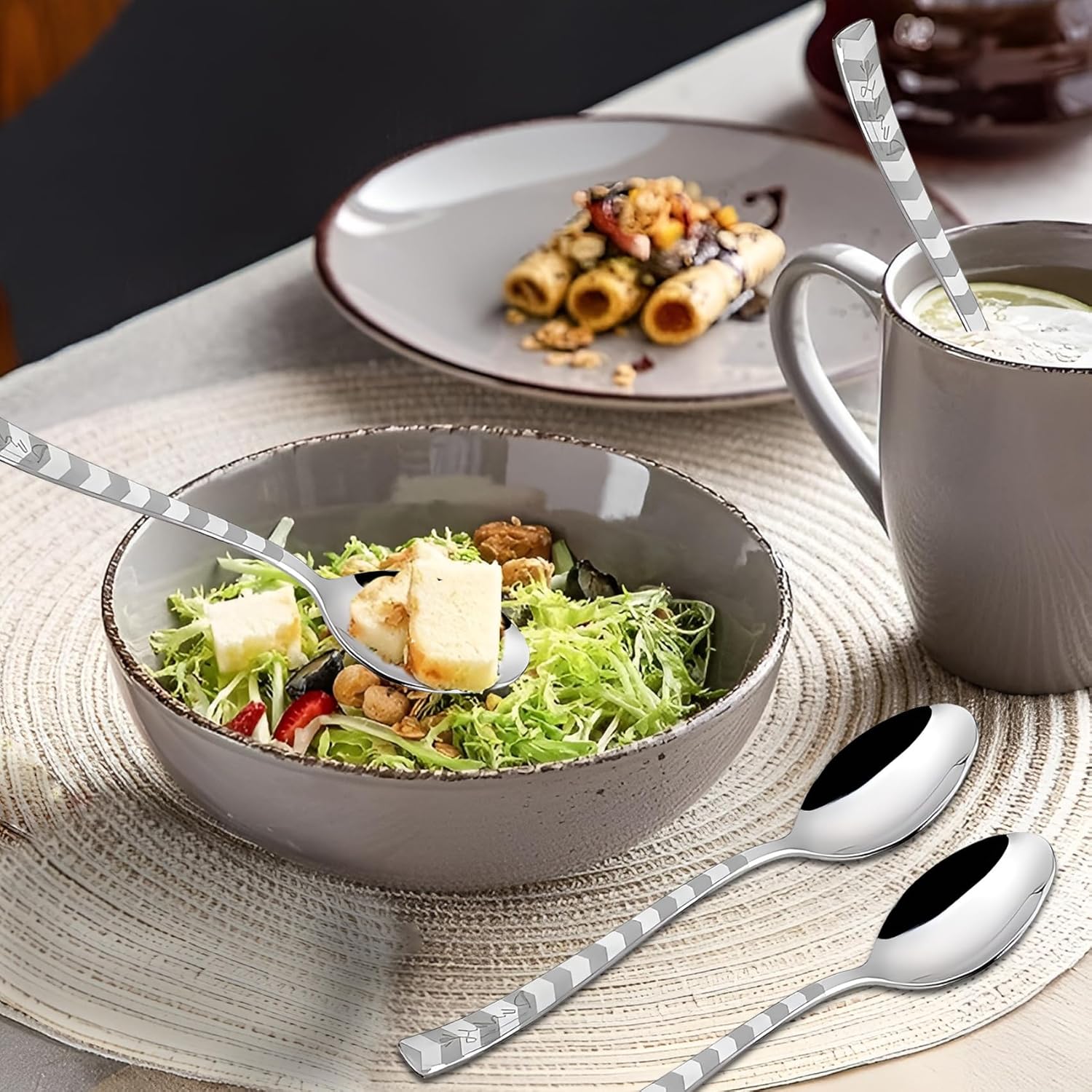 Enhance your dining experience with this 6-piece Stainless Steel Spoon Set featuring an elegant Arrow Design. Each 16 cm spoon is crafted from premium stainless steel with a mirror-polished finish for lasting shine and durability. Perfect for everyday meals, restaurants, or dinner tables, these spoons are rust-resistant, easy to clean, and designed for comfortable use. Ideal for home, kitchen, or gifting.