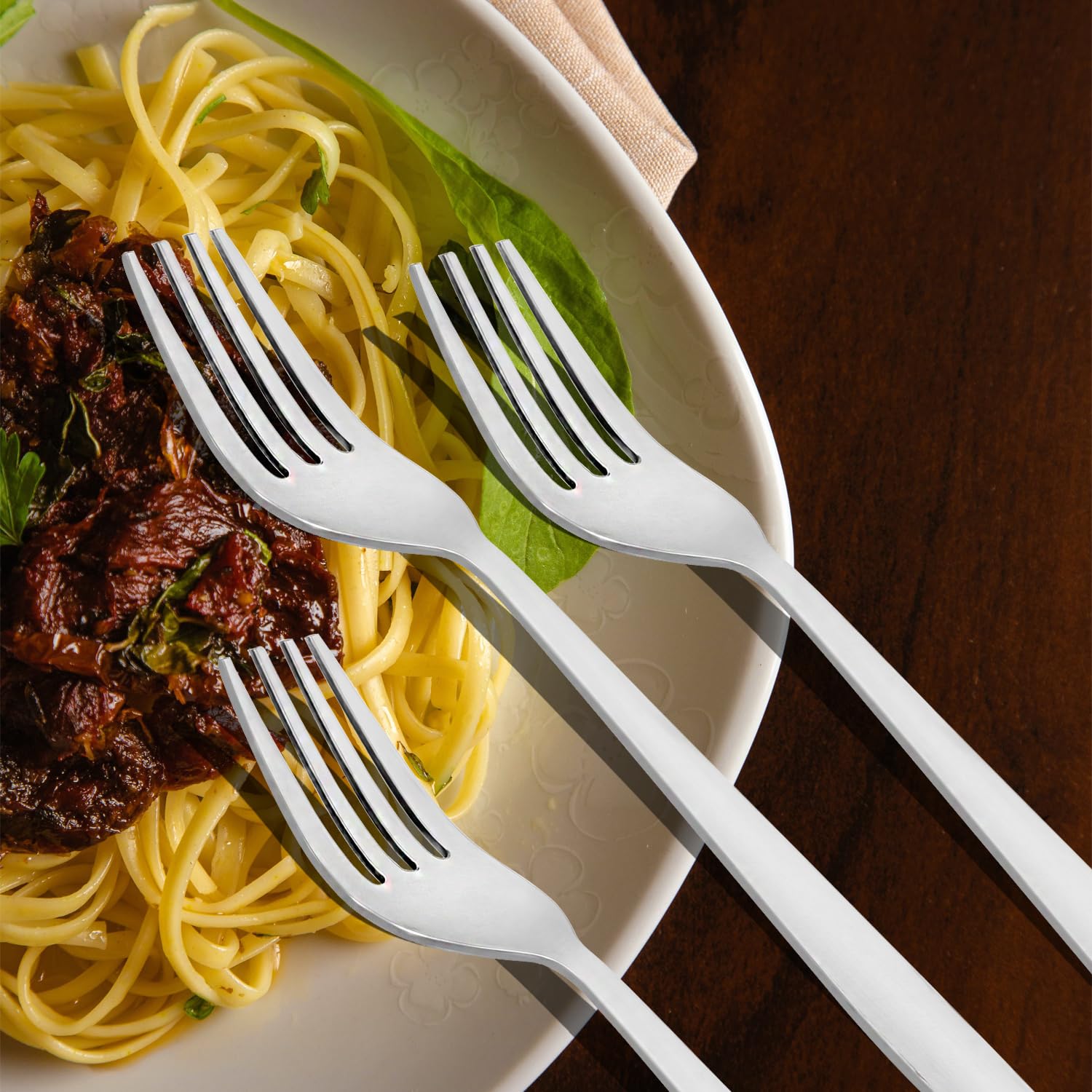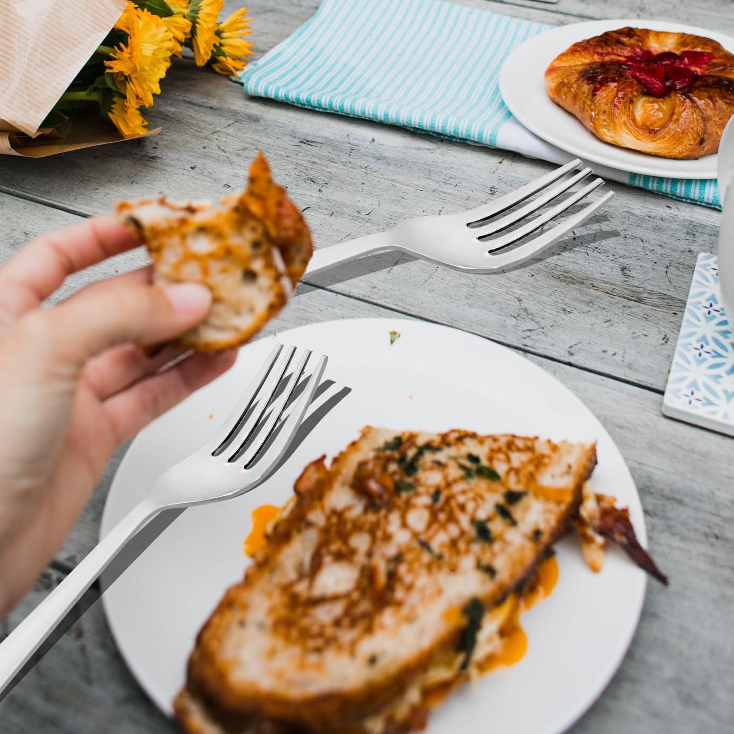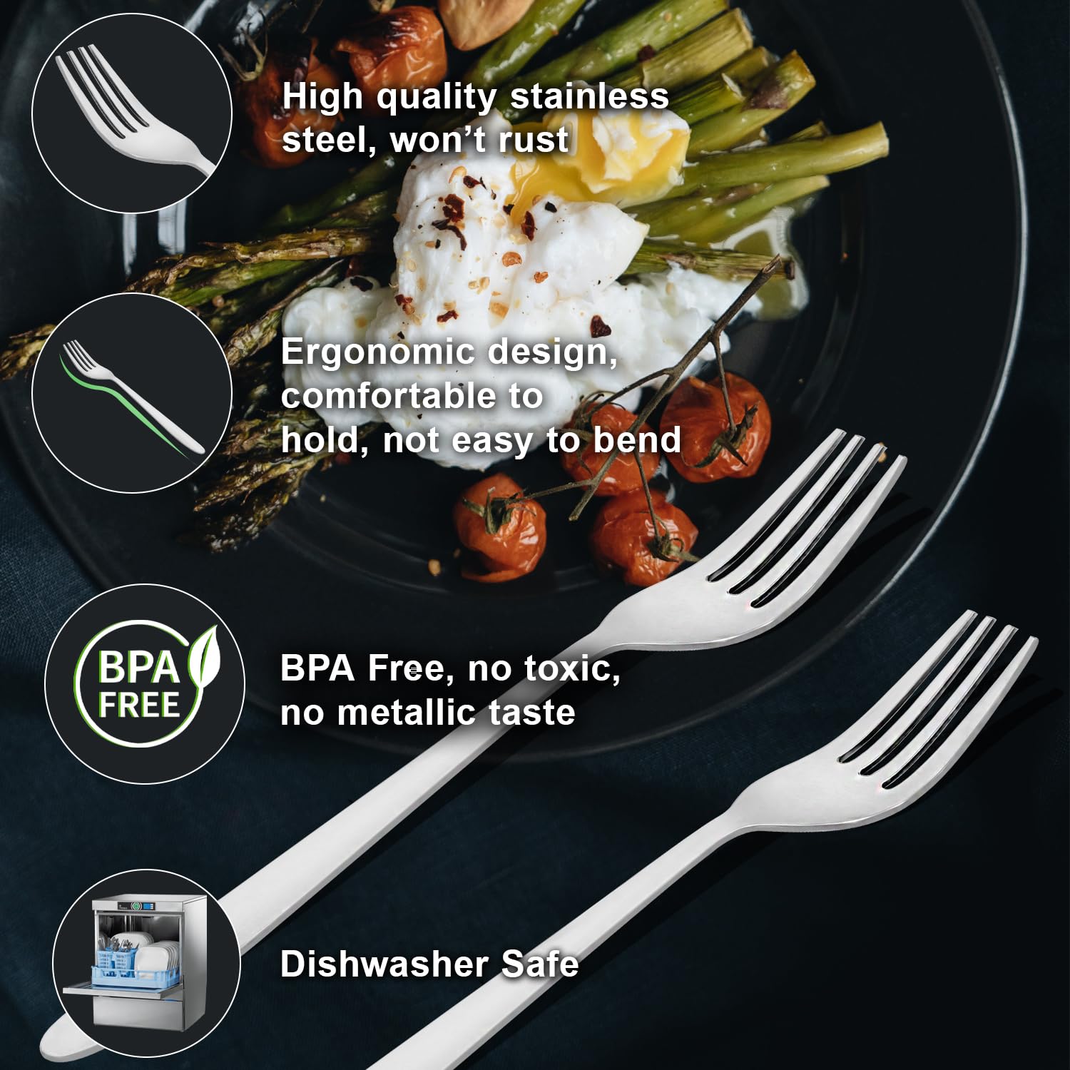 - HIGH QUALITY STAINLESS STEEL: The material of this forks set of 12 stainless steel stands out for their durability and non-corrosion resistance, sturdy and not easily bent. Most importantly, it's dishwasher-safe.