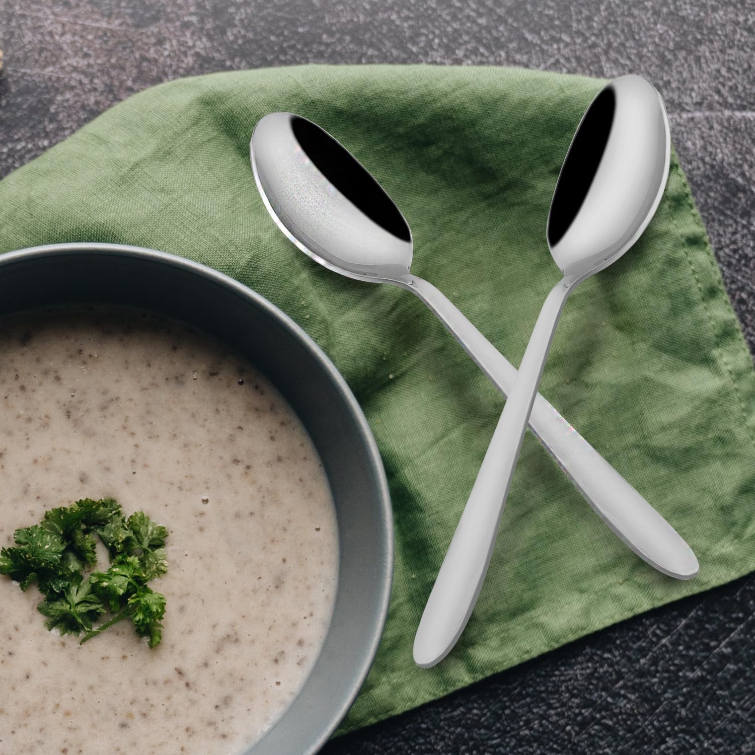 12 Pieces Stainless Steel Table Spoon Set (Sigma Design) adds elegance and functionality to your dining table. Each 18 cm spoon is crafted from high-quality, food-grade stainless steel with a mirror-polished finish. Ideal for tea, coffee, sugar, condiments, and everyday use, these spoons feature a sturdy handle and smooth edges for a comfortable grip. Perfect for home, kitchen, restaurants, or as a thoughtful gift set.