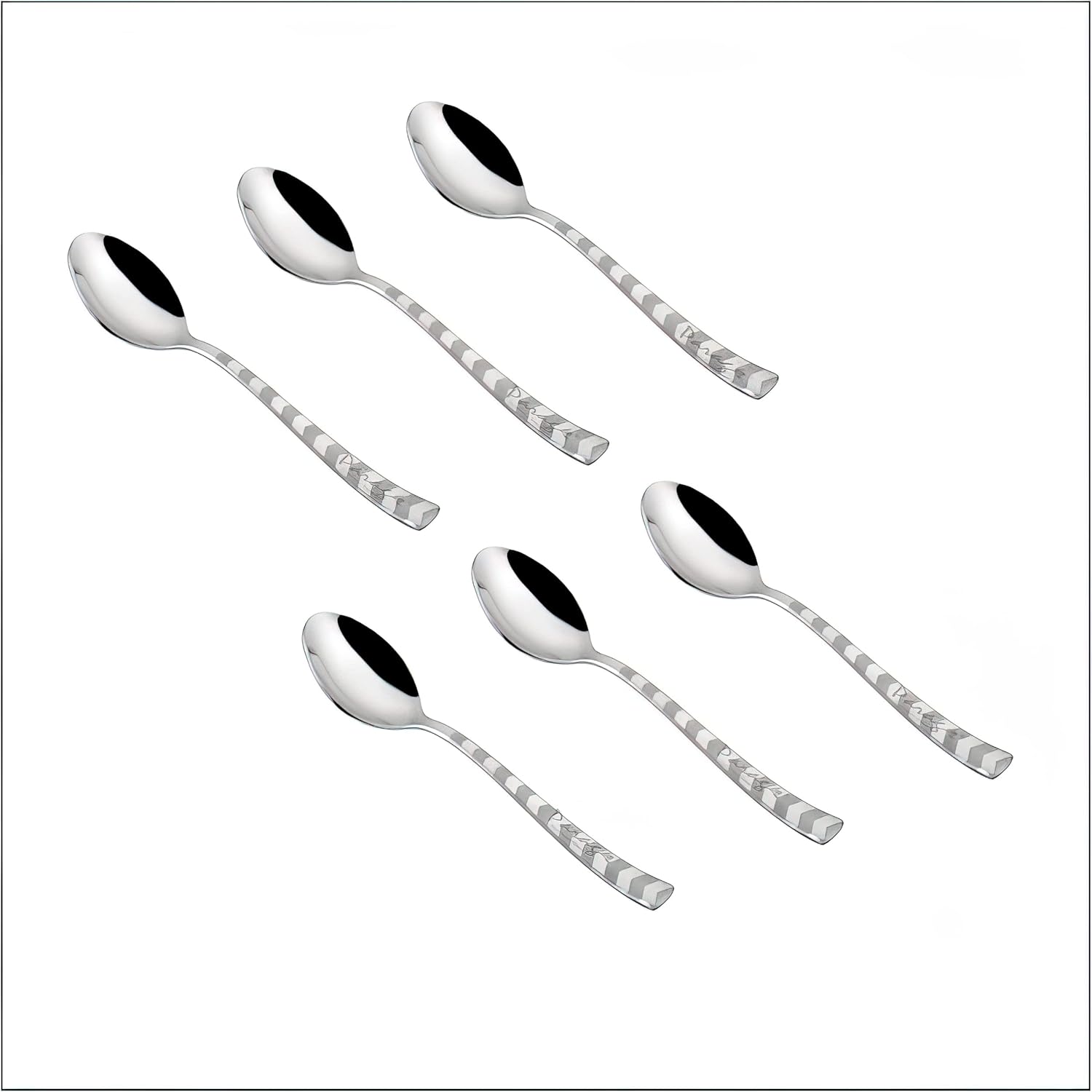 Stainless Steel Tea Spoon Set of 6 | Arrow Design Small Spoons for Home & Kitchen | 14 cm, Silver