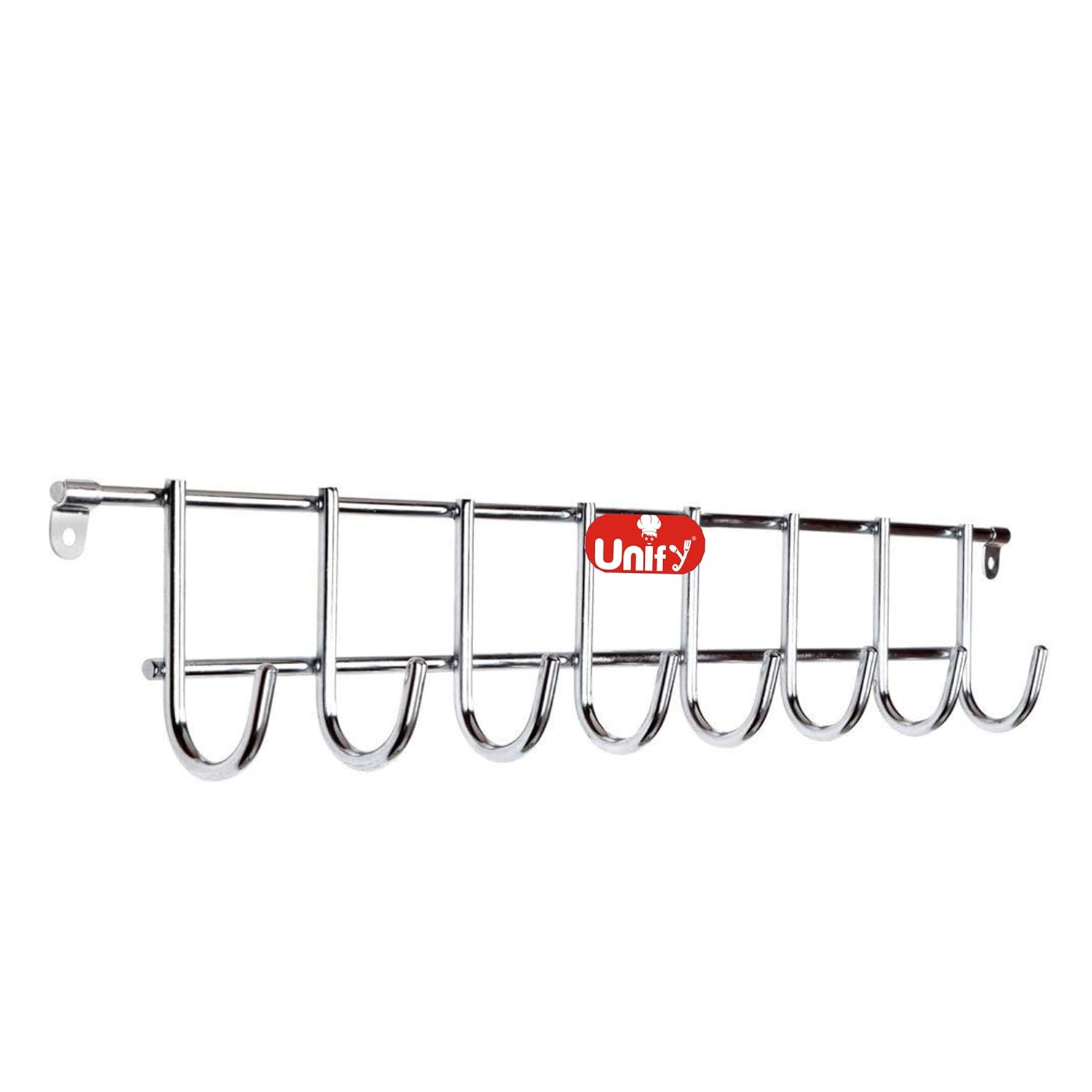 Stainless Steel Wall Cloth Hanger | 8 Hook Door Mounted Rack Silver