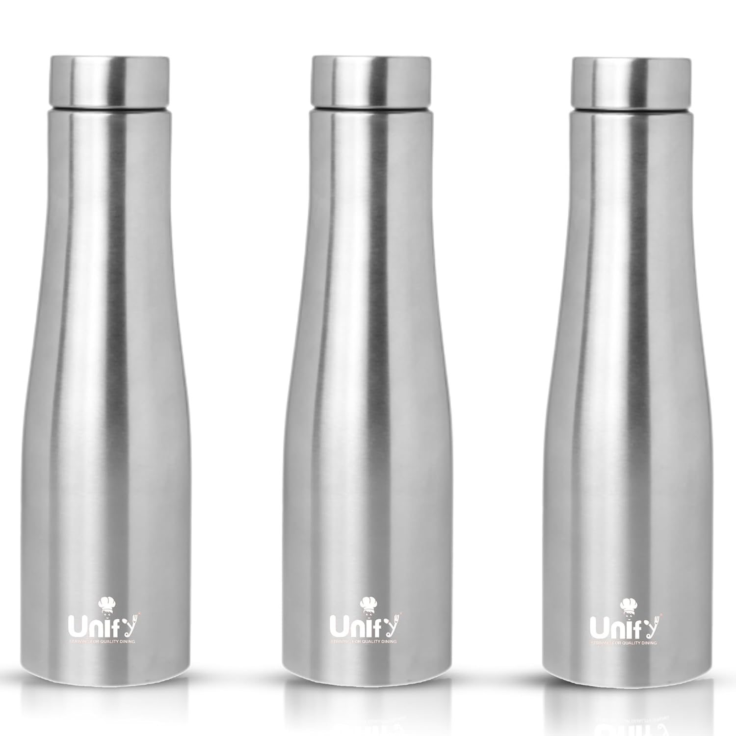Stainless Steel Water Bottle 1 Litre | Leak-Proof Fridge Bottle for Home, Gym & Travel | Set of 3, Silver