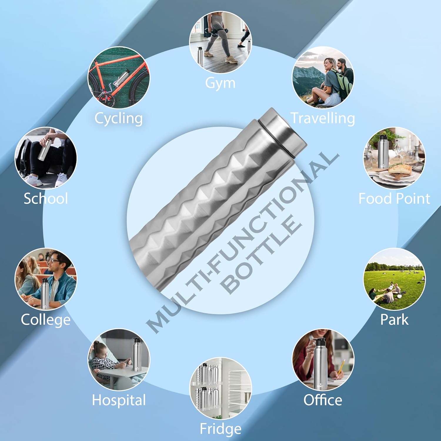 Crafted from premium stainless steel, this 1L Mars Silver water bottle ensures durability and resistance to rust. Its leak-proof design provides reliable spill protection, making it ideal for everyday use, travel, or workouts. The sleek silver finish not only looks sophisticated but also resists fingerprints and scratches, maintaining a clean appearance. Designed for convenience, this bottle keeps your drinks fresh and easily accessible wherever you go.