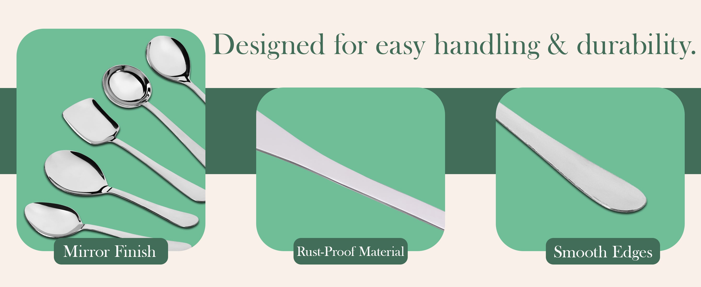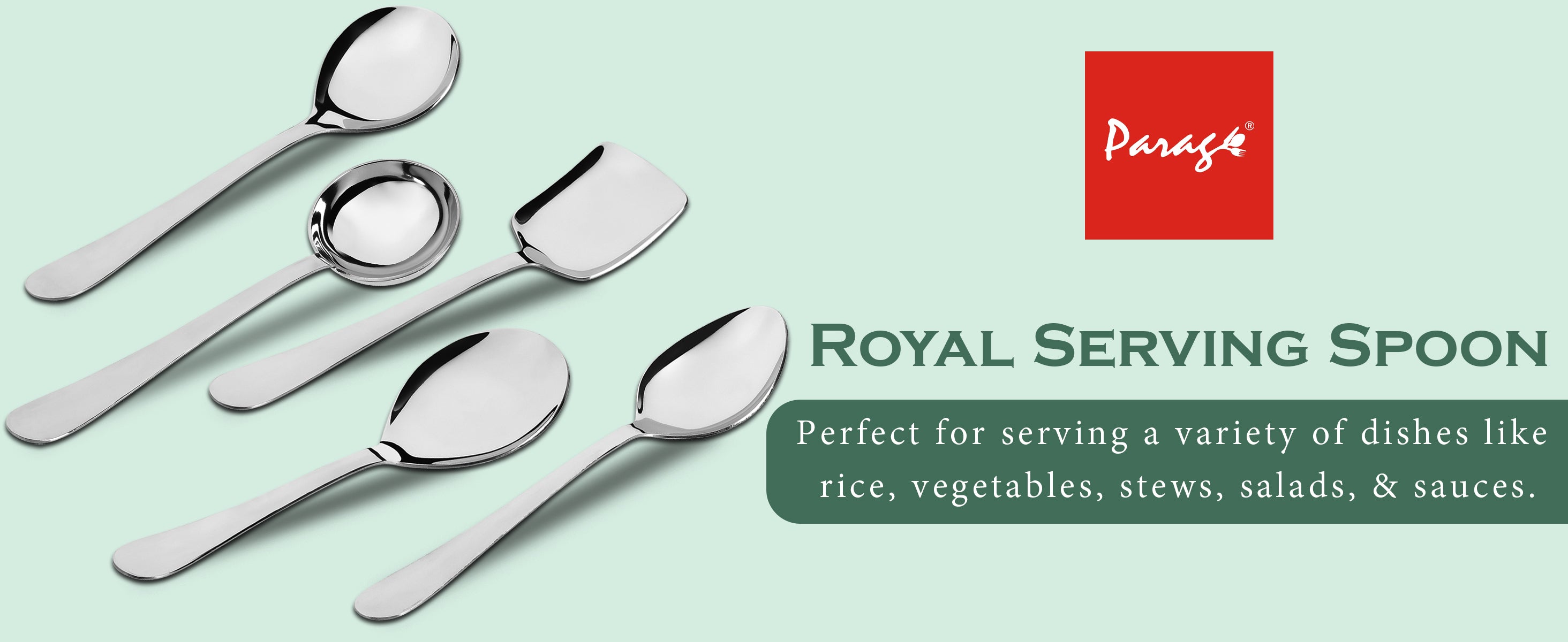 5 Pcs Stainless Steel Serving Spoon Set for Kitchen & Dining – 1.8mm Heavy Gauge, Soup Ladle, Solid, Rice & Basting Spoons, Silver
