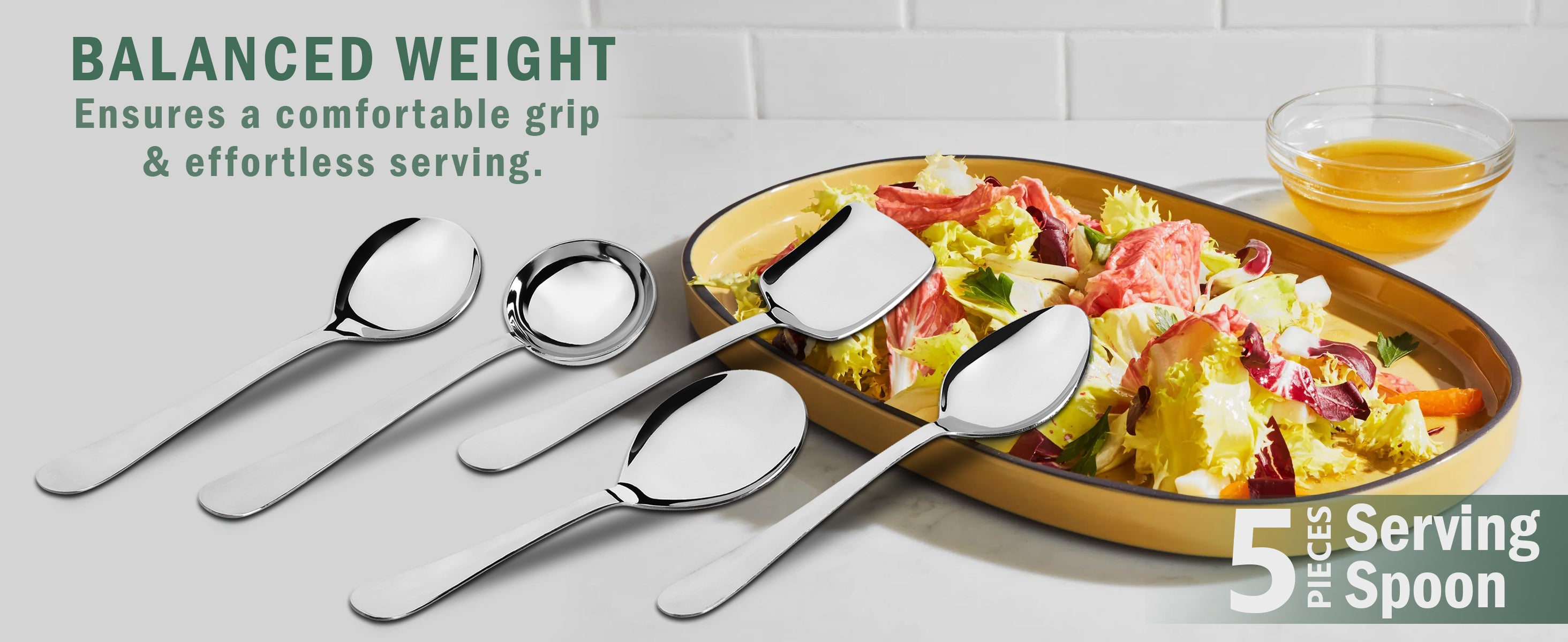 This expert-crafted 5-piece stainless steel serving spoon set offers exceptional durability with its 1.8mm heavy gauge construction. It includes essential utensils—a soup ladle, solid spoon, rice spoon, and basting spoons—each designed for specific kitchen and dining tasks. The sturdy design resists bending and tarnishing, while the polished silver finish ensures easy maintenance and an elegant presentation. Ideal for professional kitchens or home use, this set combines functionality with longevity for reliable daily serving.
