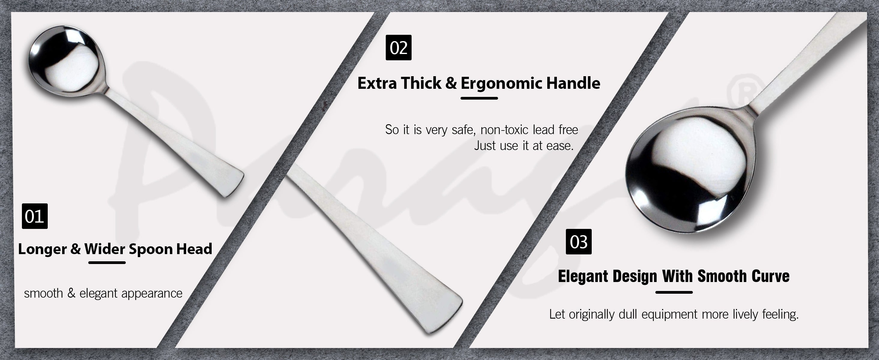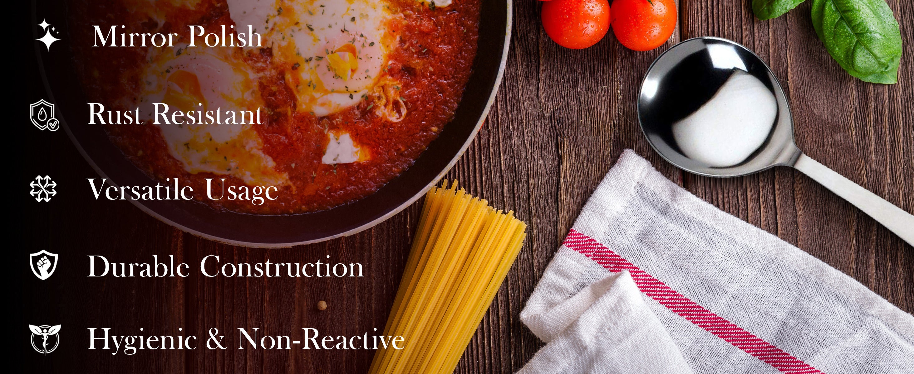 This set includes four durable, stainless steel serving spoons, each measuring 21 cm. Designed for versatility and strength, these big cooking spoons are ideal for stirring, serving, and portioning a variety of dishes. Their sturdy construction ensures long-lasting use, while the smooth finish makes cleaning simple and hygienic. Perfect for both professional kitchens and everyday cooking, this set enhances meal preparation with practical efficiency.