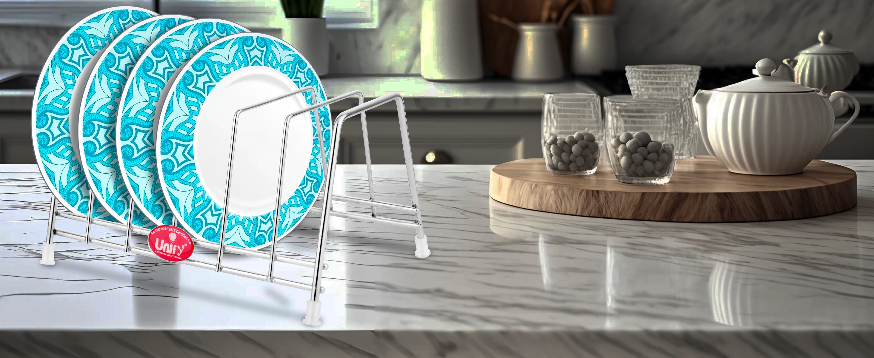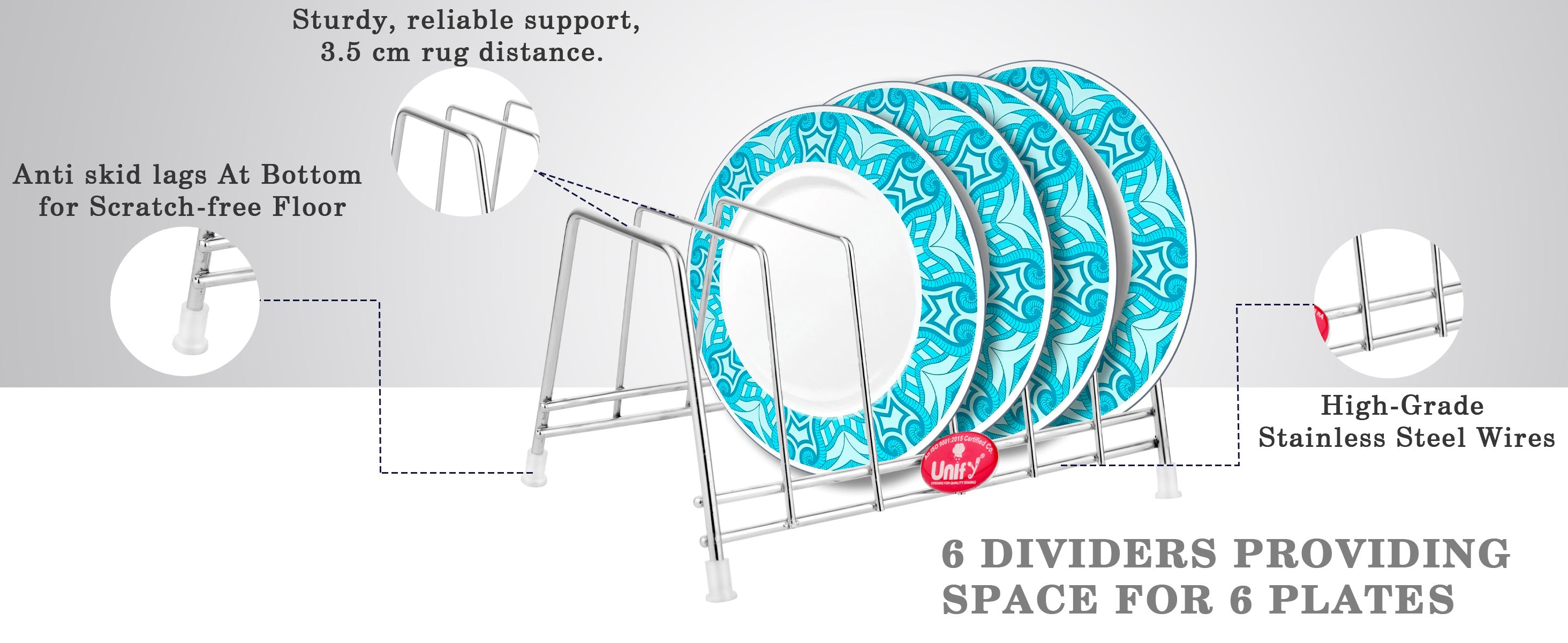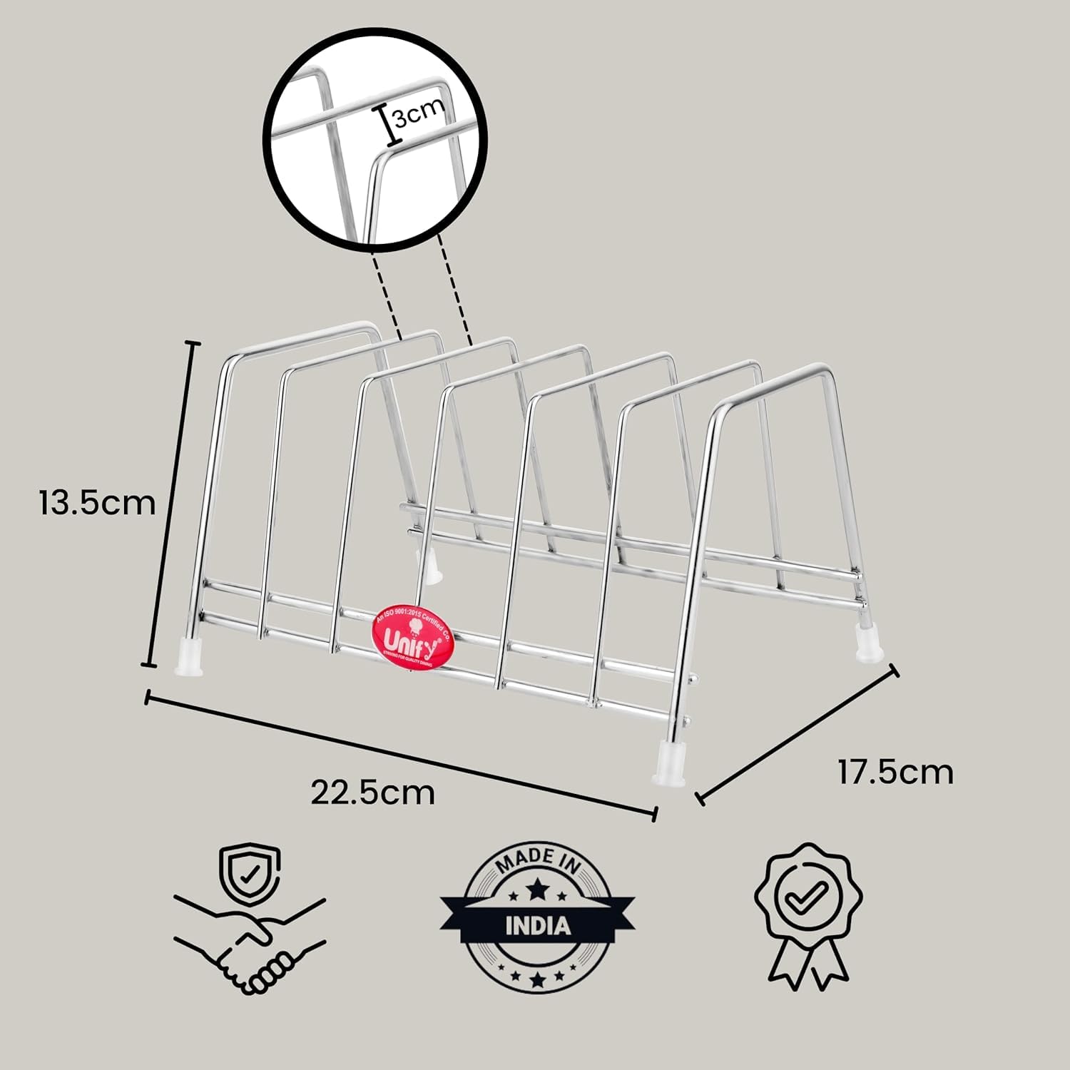 Stainless Steel Countertop Pull-Out Shelf – 6-Section Plate & Lid Holder, Silver