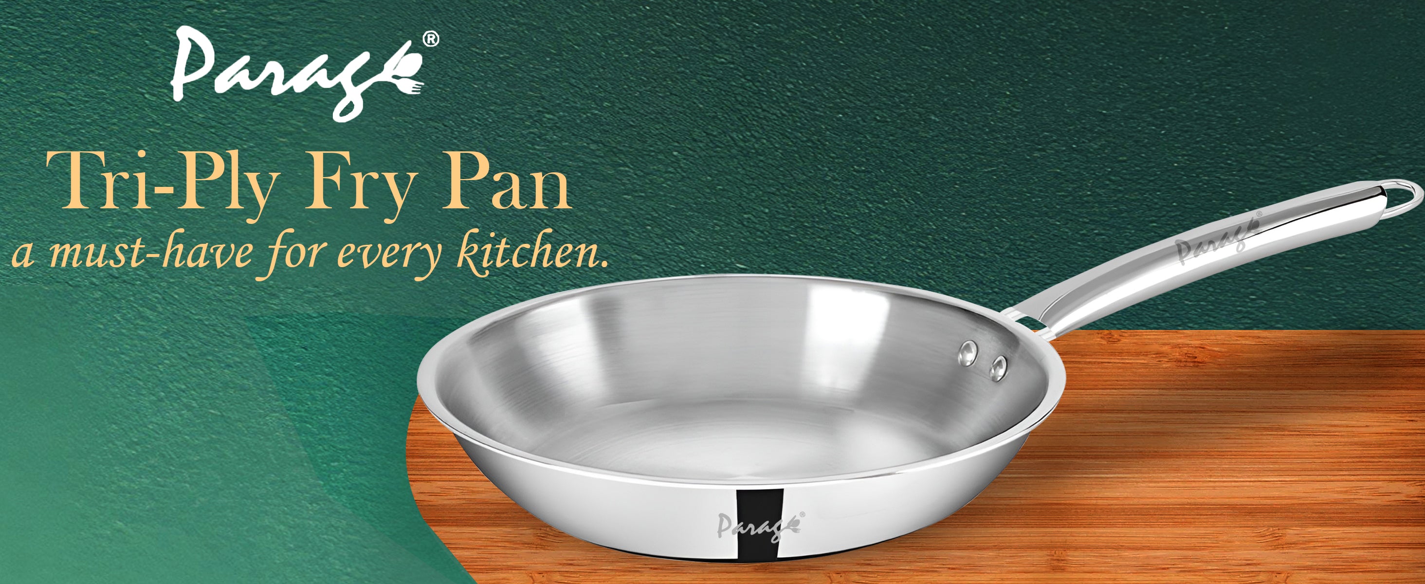 Tripure 24 cm Triply Stainless Steel Fry Pan | Scratch Resistant, Stay-Cool Handle